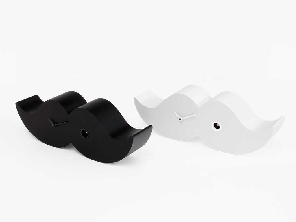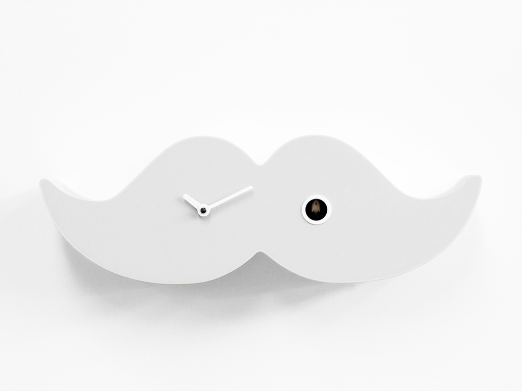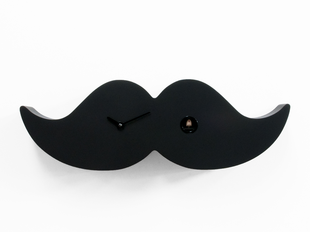 Retro-Geschmack, Inspiration aus anderen Epochen; Hier ist eine moderne und ungewöhnliche Version des Schnurrbartes, der im neunzehnten Jahrhundert von eleganten, angesehenen, intellektuellen Männern nach London gebracht wurde. Der Lenkerschnurrbart war eines der Schlüsselsymbole des Londoner Dandys und charakterisierte sein Gesicht und seinen Ausdruck. Heute sind die Schnurrbärte ein Symbol für den modernen Dandy der Metropolen der ganzen Welt. Dank des Kuckucks von Progetti können sie jetzt aufgehängt oder auf den Schreibtisch oder in ein Regal gestellt werden, was dem Raum eine elegante Note verleiht, aber auf Wunsch auch ironisch wirkt. Dandy besteht aus Holz und ist sowohl als Schwarz-Weiß-Klassiker erhältlich. Batterie Quarzwerk. Ein lichtempfindlicher Sensor stoppt den Klingelton automatisch, wenn kein Licht vorhanden ist.