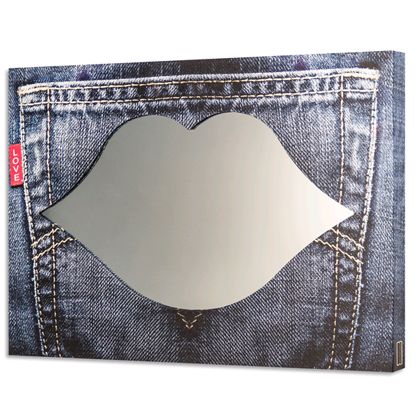 Spiegel mit Holzstruktur, geformt und mit hochauflösender bedruckter Leinwand bedeckt.