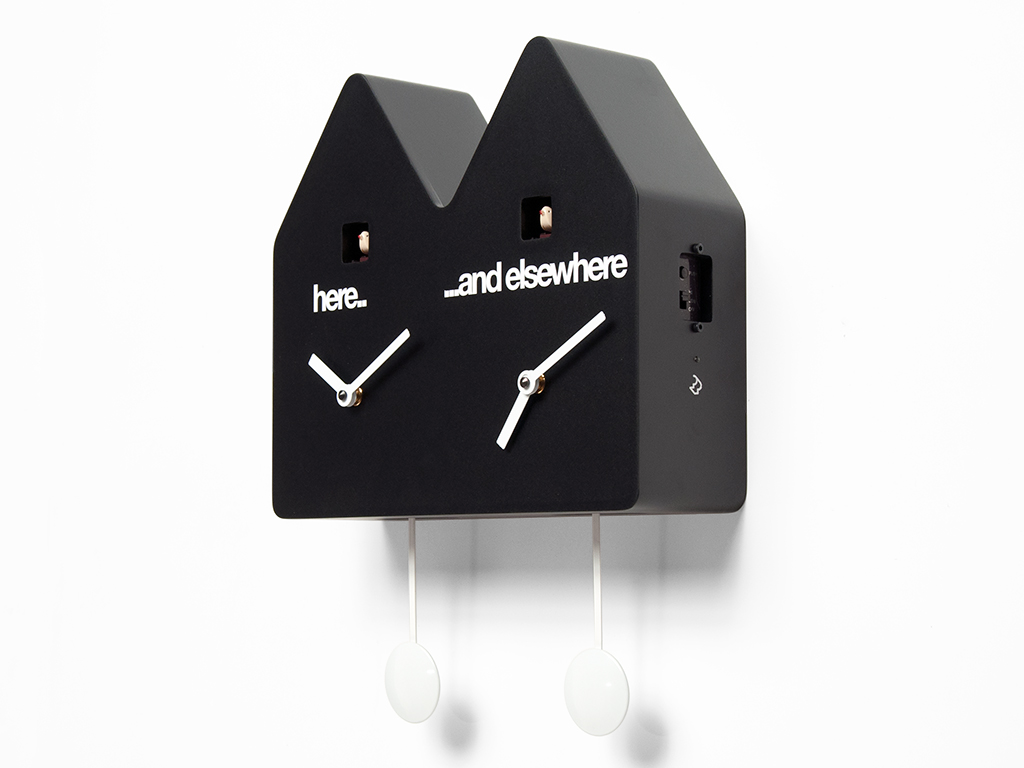 Doppelkuckucksuhr aus lackiertem Holz. Batteriebetriebene Quarzwerke. Ein lichtempfindlicher Sensor stoppt den Klingelton automatisch, wenn kein Licht vorhanden ist.