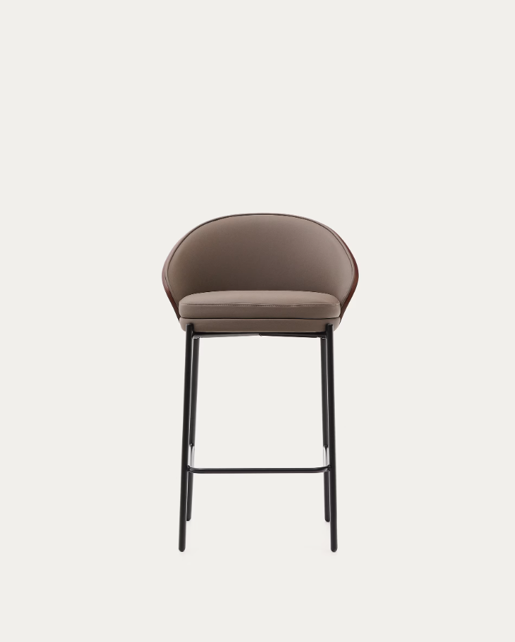 • Hocker mit Rückenlehne aus Eschenfurnier mit Walnuss-Finish.