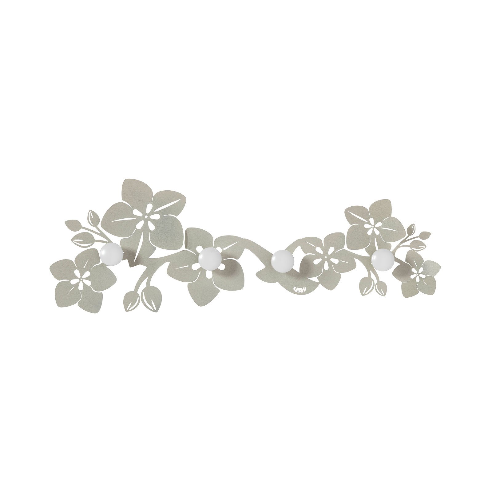 Ein Wandkleiderbügel aus der eleganten Linie Fior di Loto mit vier weißen und äquidistanten Haken. Erhältlich in drei Farbvarianten.