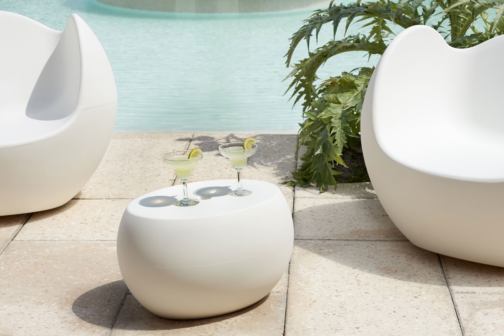 Die niedliche Form des Fizzz-Deckels erinnert an den Verschluss einer Flasche und wird von einem eleganten konischen Kunststoffsockel getragen. Fizzz ist ideal für Vertrags- und Veranstaltungsräume im Innen- und Außenbereich und passt sich dank der unterschiedlich großen Basis und der vielen verfügbaren Farben an die Räume an.