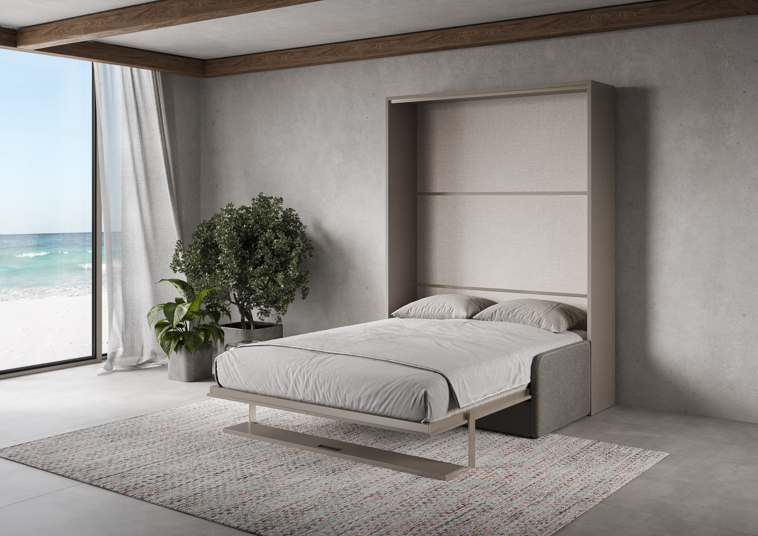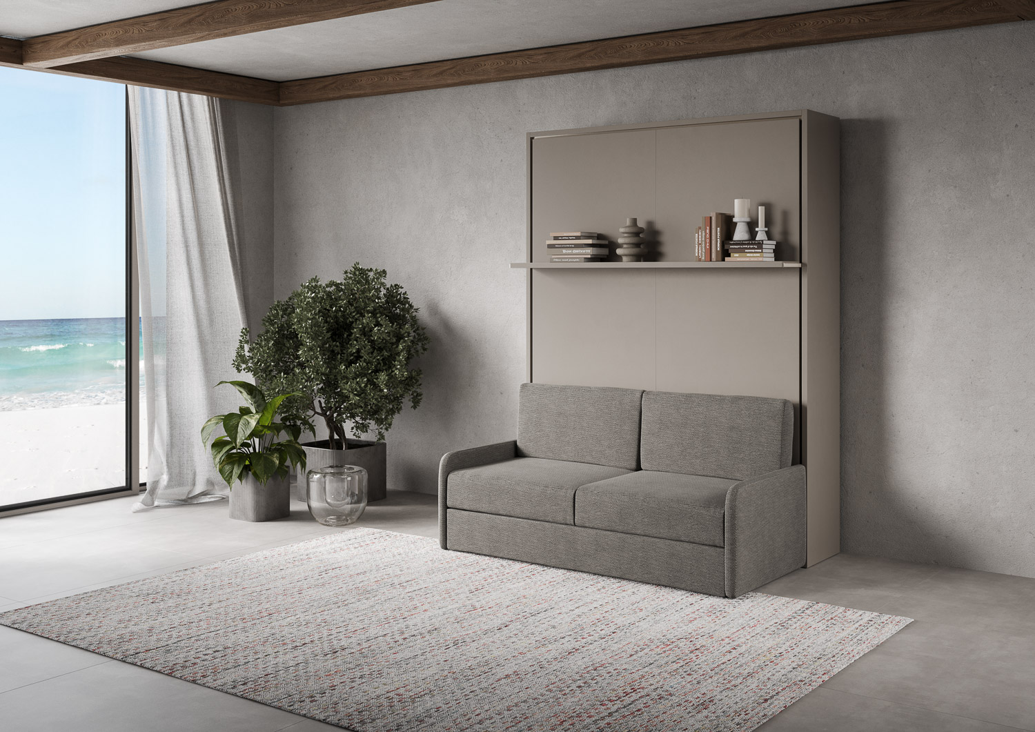 | Material | Das französische vertikale Klappbett 140 Versia Sofà, mit integriertem Sofa und Regal, revolutioniert das Raumkonzept. Eleganz, Funktionalität und Design verschmelzen im Versia Sofà, dem französischen vertikalen Klappbett 140, das den Wohnbereich in wenig |