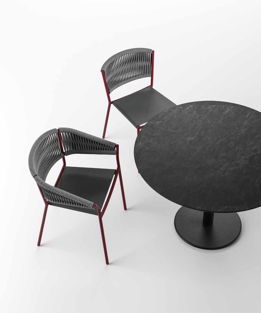 Der Sitz zeichnet sich durch eine Batyline-Membran aus, ist leicht, elegant, beständig gegen UV-Strahlen, Schimmel und Witterungseinflüsse, recycelbar und leicht austauschbar.