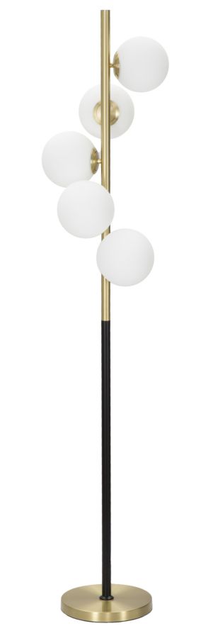 Stehleuchte mit 5 Lichtpunkten aus goldfarbenem und schwarzem Metall mit weißen Glaskugeln. Die essentiellen und minimalistischen Linien verbinden sich mit der Eleganz von Gold und Schwarz zu einer einzigartigen Kombination.| Länge | 30 cm |