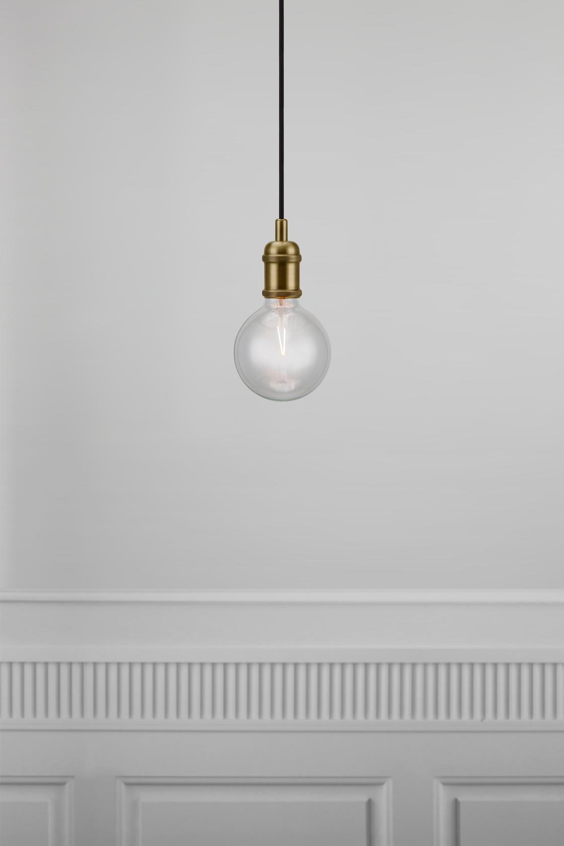 Hängende Glühbirne aus Metall.