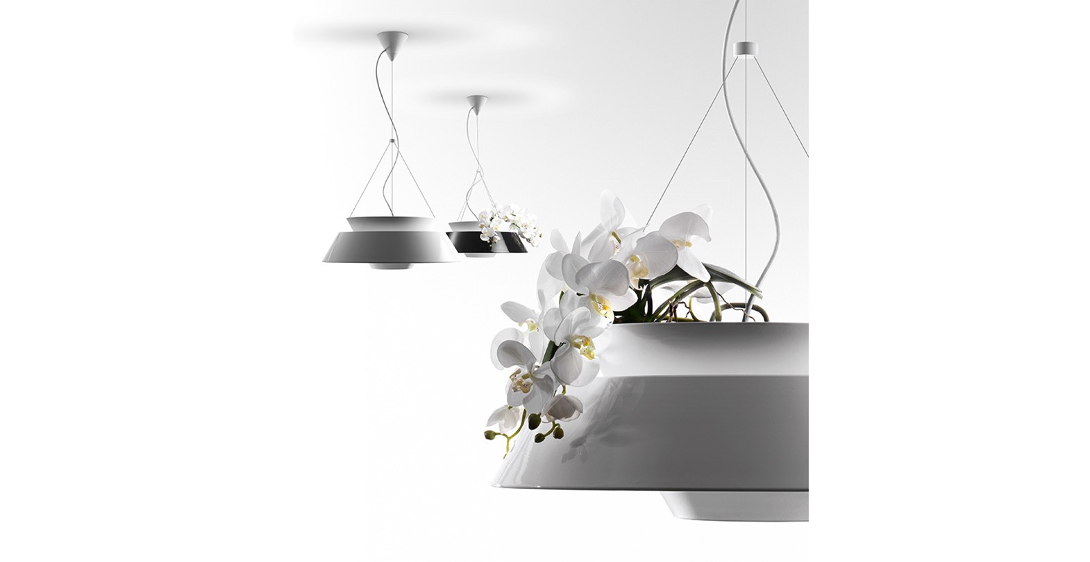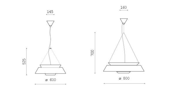 Die Kollektion umfasst Hängelampen, die in zwei verschiedenen Durchmessern erhältlich sind und in den Ausführungen Weißweiß, Schwarzglanz und Corten erhältlich sind.