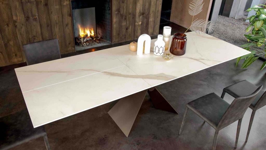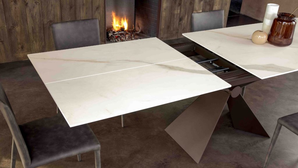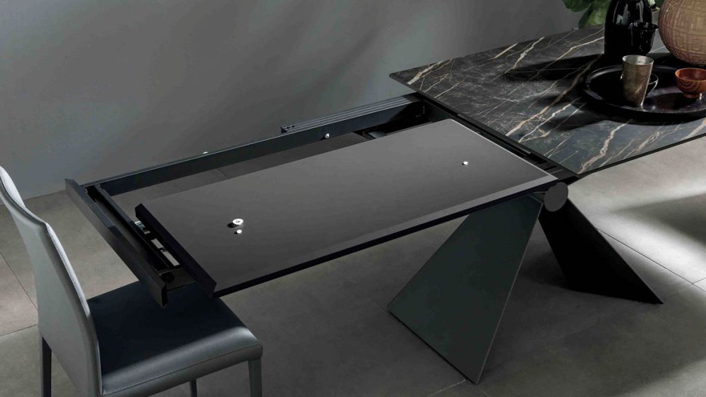 Arbeitsplatte aus Melamin oder Keramik. Synchrones Öffnen mit interner Verlängerung.