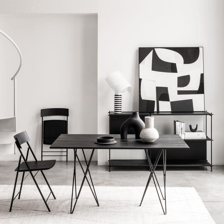 Die Struktur besteht aus zwei drehbaren Beinen aus 12 mm massivem Rundstahl, lackiert mit Sablé-Finish.