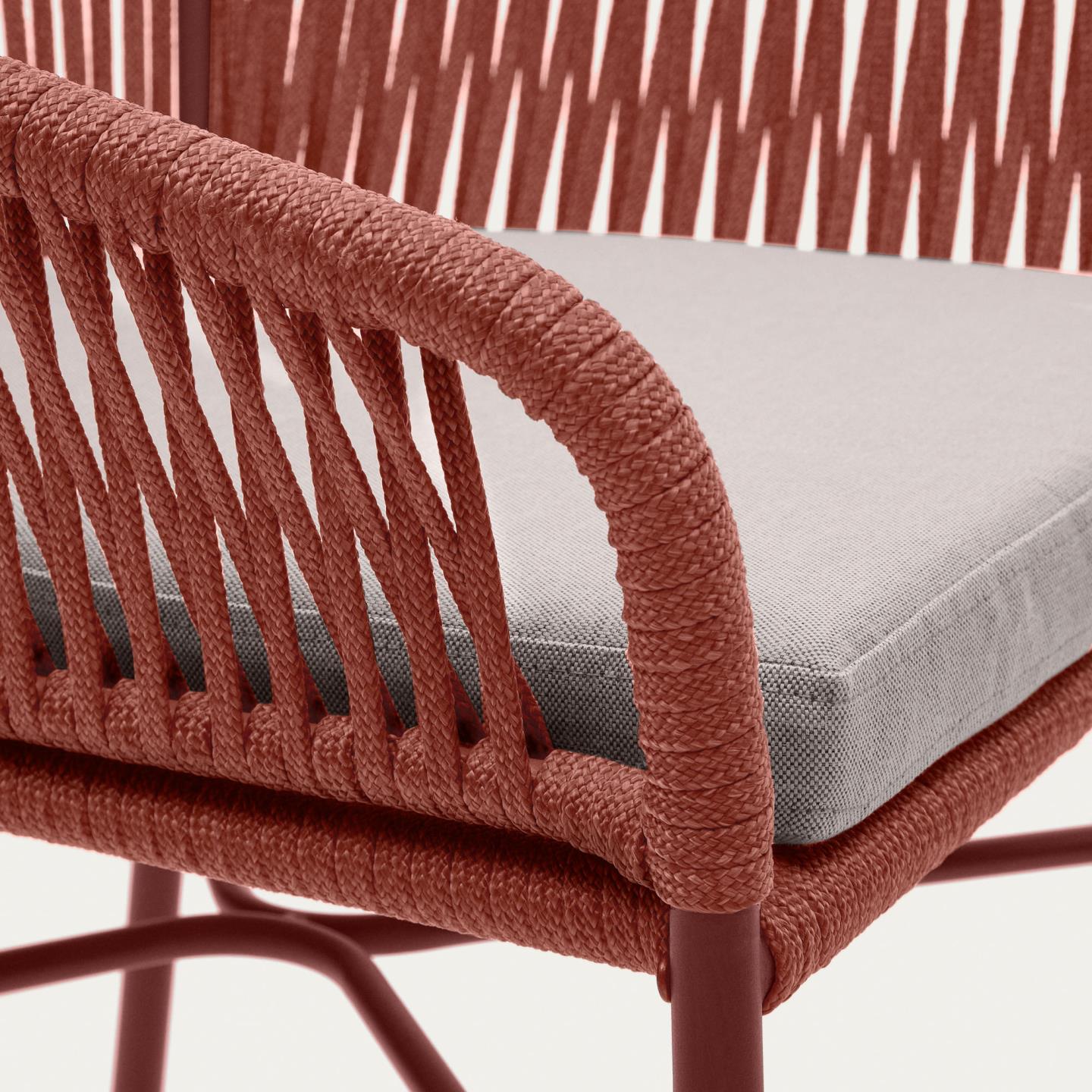 Ob beim Essen im Haus oder auf dem Balkon: Der Hocker Yanet verleiht jedem Raum dank seiner handgeflochtenen Seilsitzfläche und den für den Innen- und Außenbereich geeigneten Materialien eine trendige Note.
