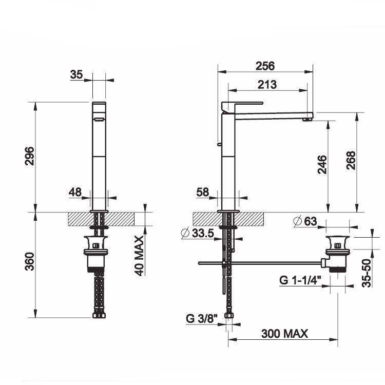 Hoher Einhebel-Waschtischmischer mit Pop-up-Abfall.