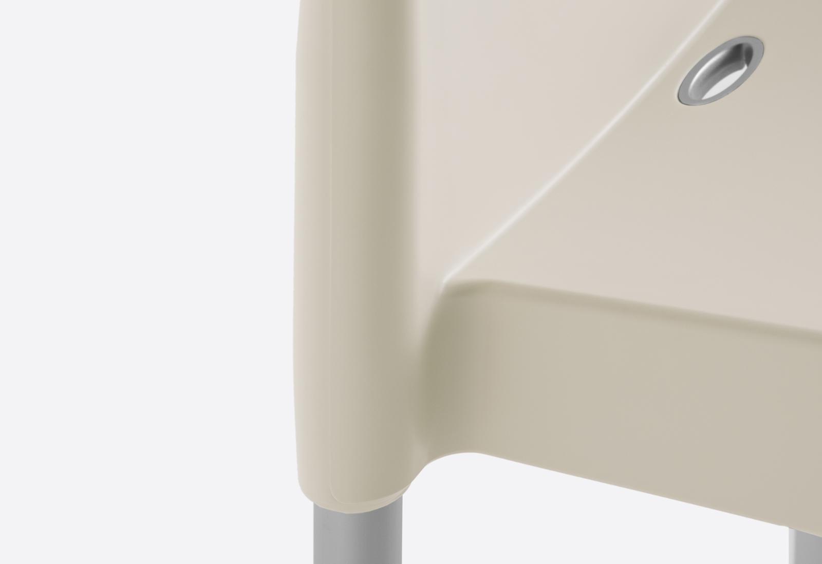 Erhältlich in verschiedenen Farben, kann er auch den seitlichen Verbindungshaken enthalten, der an den Beinen befestigt werden soll, was ihn zu einem idealen Stuhl auch für Konferenzräume macht. Es kann sowohl drinnen als auch draußen verwendet werden.