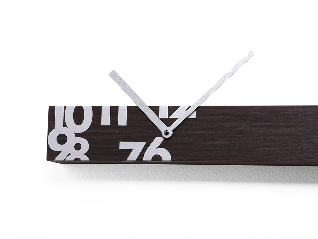 Wanduhr aus lackiertem Holz. Batterie Quarzwerk. Verfügbar sowohl vertikal als auch horizontal.