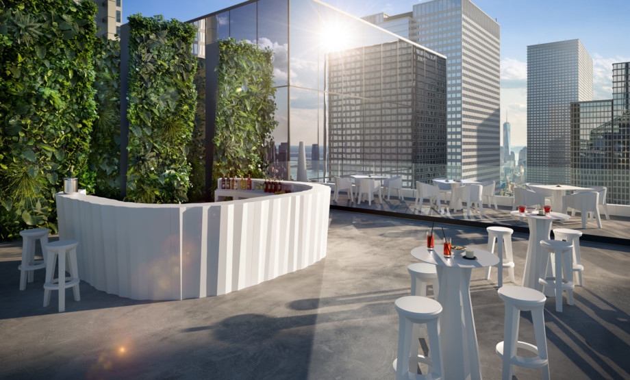 Bequemer Sessel, geeignet für den Innen- und Außenbereich, ausgestattet mit einem Ablaufloch, das auch als Griffpunkt zum einfachen Bewegen verwendet werden kann.
