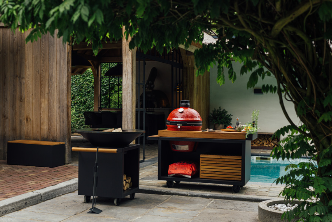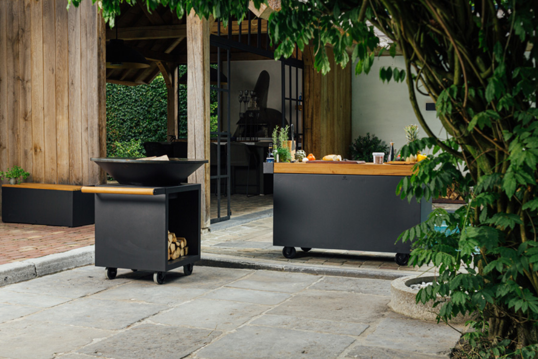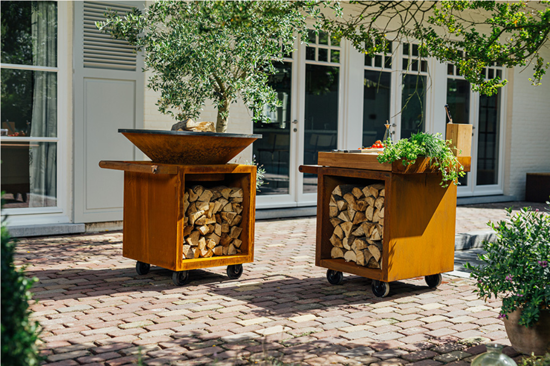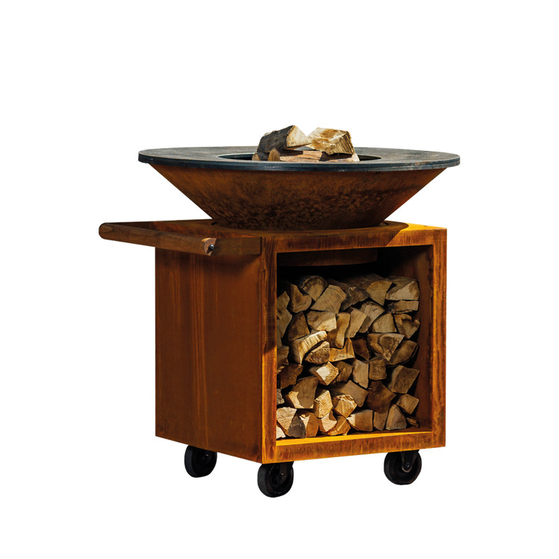 OFYR Classic Storage Corten PRO bietet den Komfort eines Griffs und Räder, mit denen Sie die Kocheinheit leicht bewegen können.