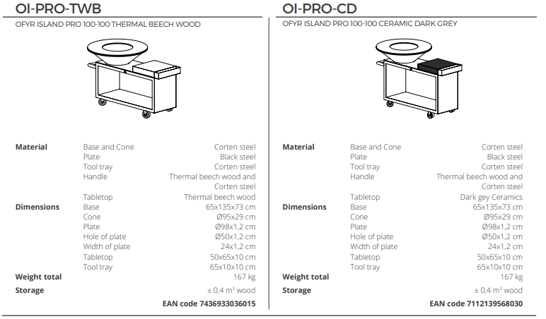 Dieses All-in-One-Gerät kombiniert unschlagbaren Stil und Funktionalität in einem kompakten Design. OFYR Island ist Ihre komplette Outdoor-Küche, da sie über den Komfort eines Griffs und Räder verfügt, mit denen Sie die Kocheinheit leicht bewegen können.