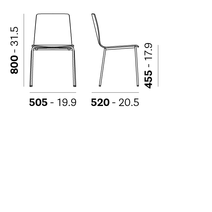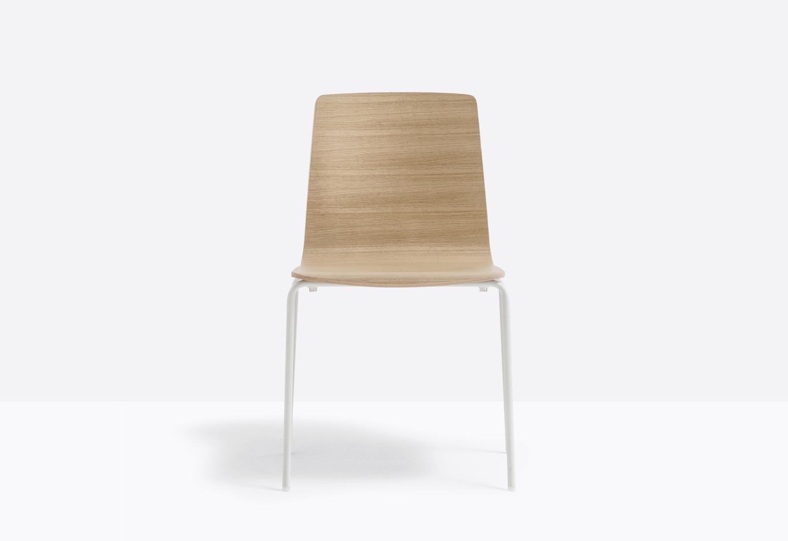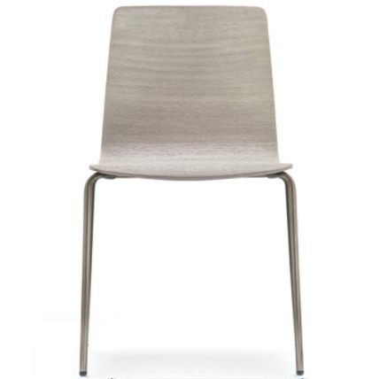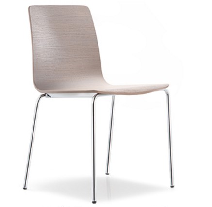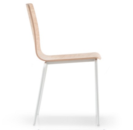 Stapelbarer Stuhl mit weichen und essentiellen Linien. Die Schale besteht aus Eichenfurniersperrholz, das in verschiedenen Ausführungen erhältlich ist. Die Struktur besteht aus verchromtem oder lackiertem Stahlrohr Ø16mm.