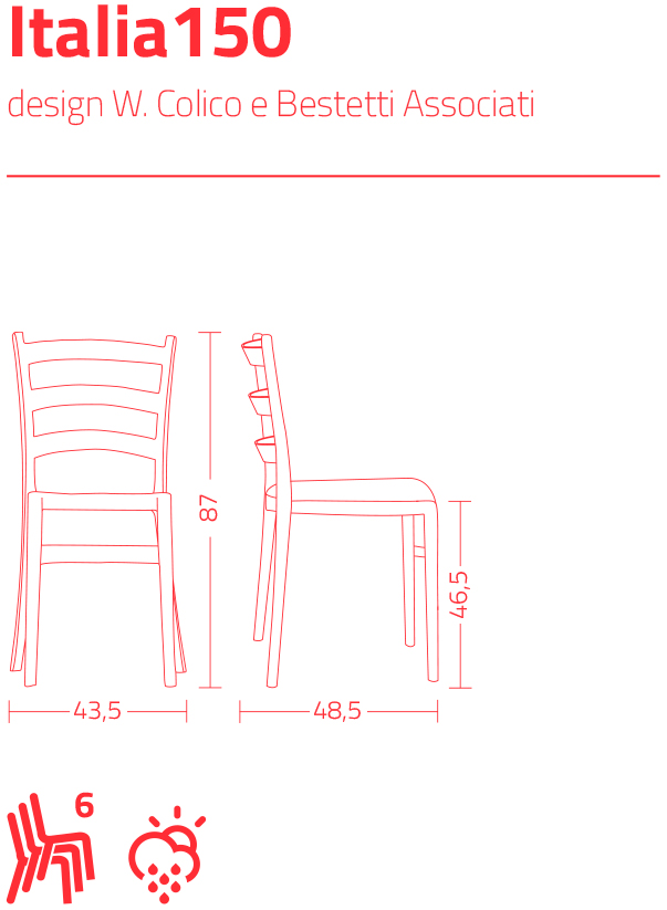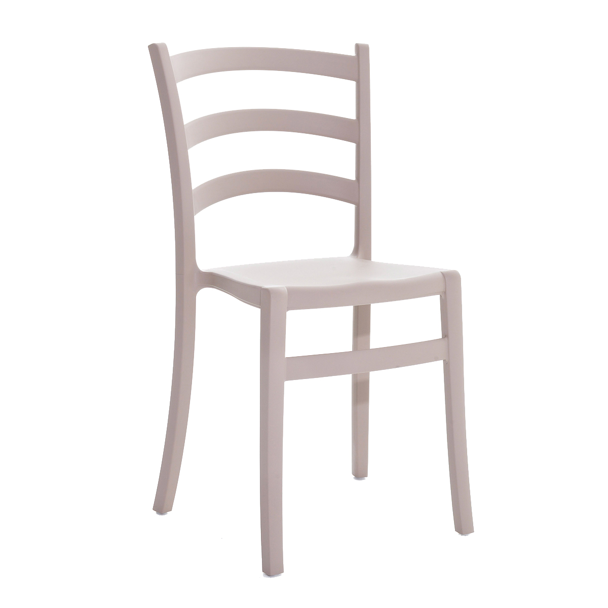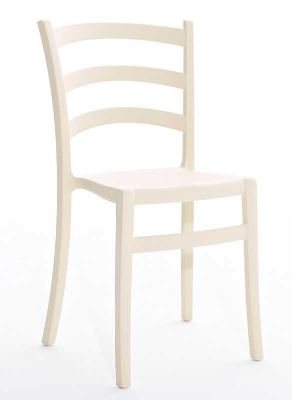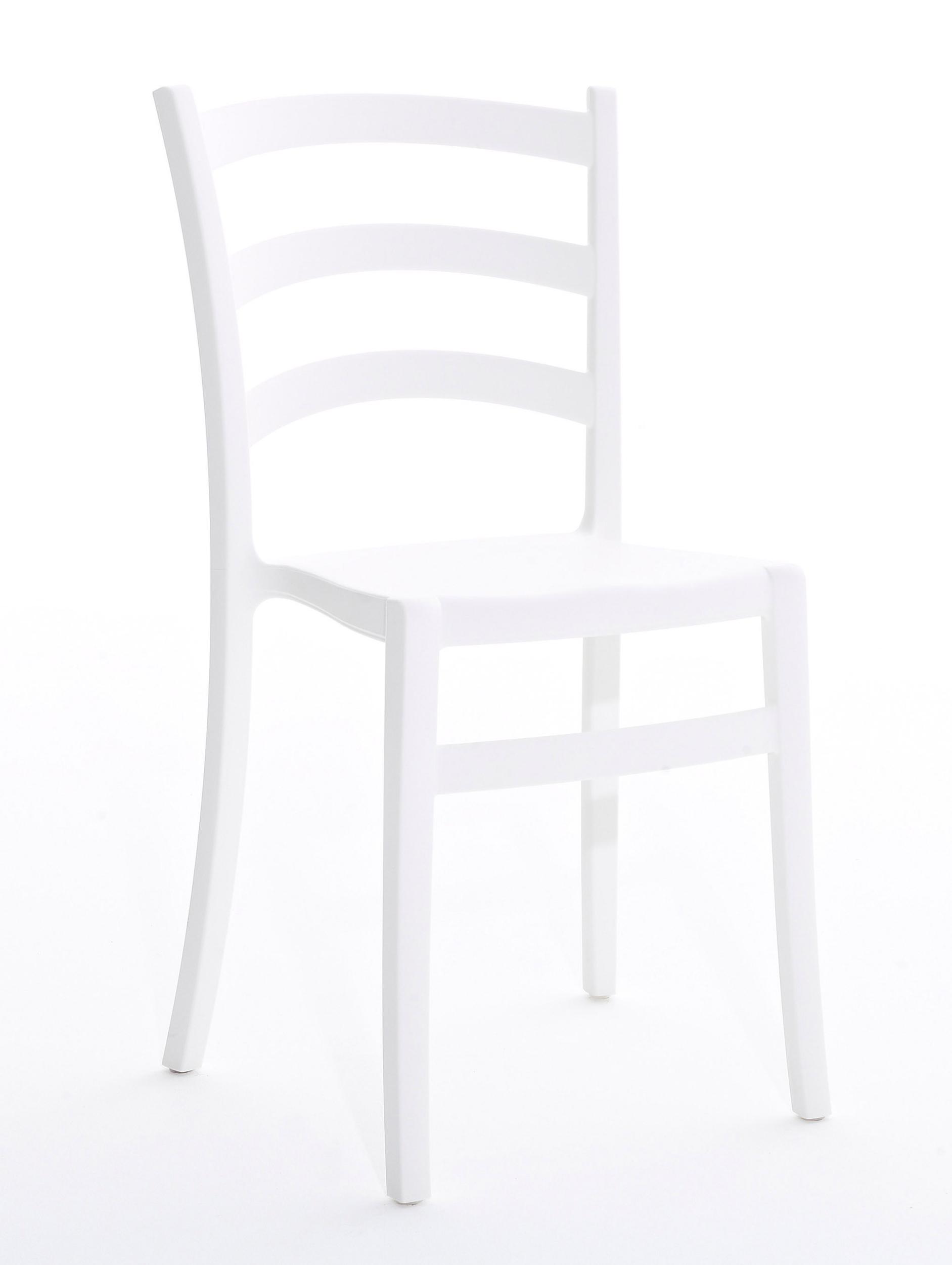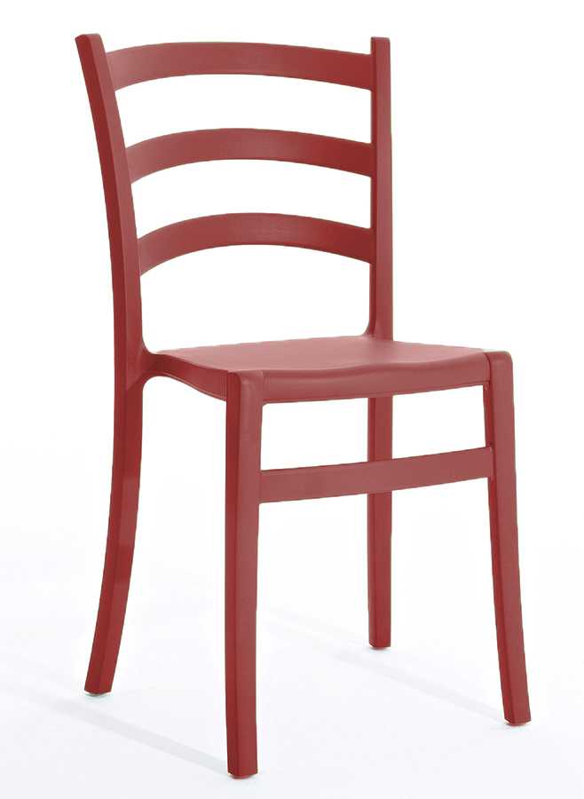 Stapelbarer Stuhl aus weichem Polypropylen, recycelbar und für den Außenbereich geeignet.
