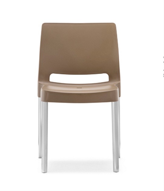 Stapelbarer Stuhl mit Monocoque-Sitz und Rückenlehne aus Polypropylen. Beine mit quadratischem Querschnitt aus satiniertem eloxiertem Aluminium mit abgerundeten Kanten. Joi kann mit einem seitlichen Nylon-Verbindungshaken ausgestattet werden, um Sitzreihen in Besprechungsräumen, Amphitheatern und Klassenzimmern zu bilden. Ideal sowohl drinnen als auch draußen. Auf Anfrage ist es auch in einer feuerfesten Version erhältlich.