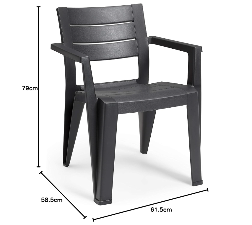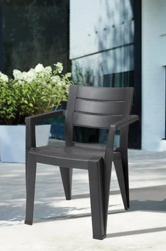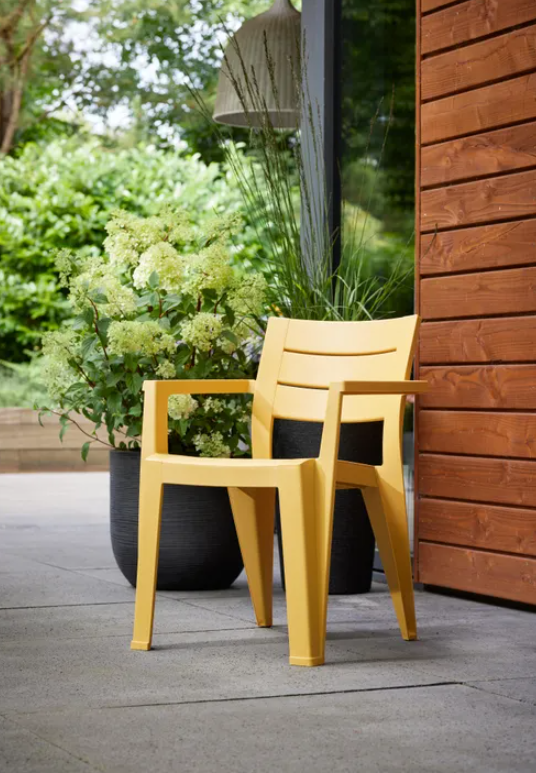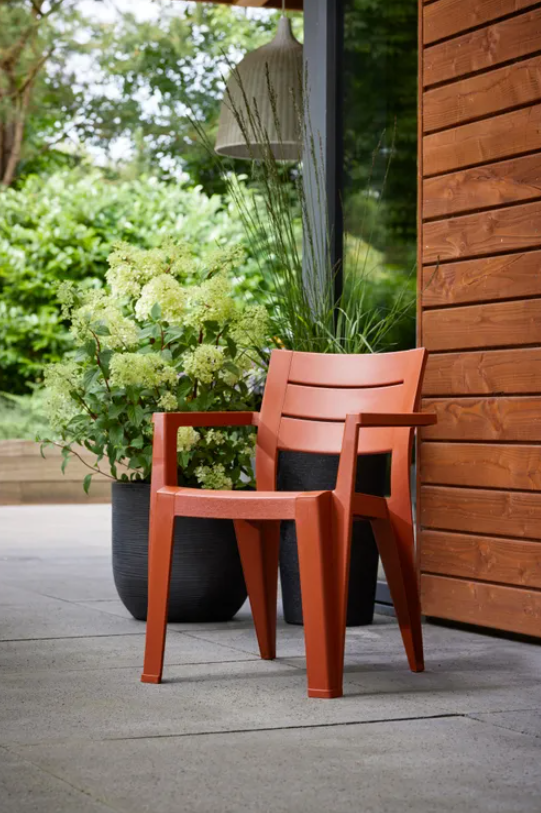 Der Julie-Stuhl von Keter ist ein raffiniertes und funktionales Gartenaccessoire, perfekt für die stilvolle Dekoration von Terrassen, Balkonen, Gärten oder Veranden.