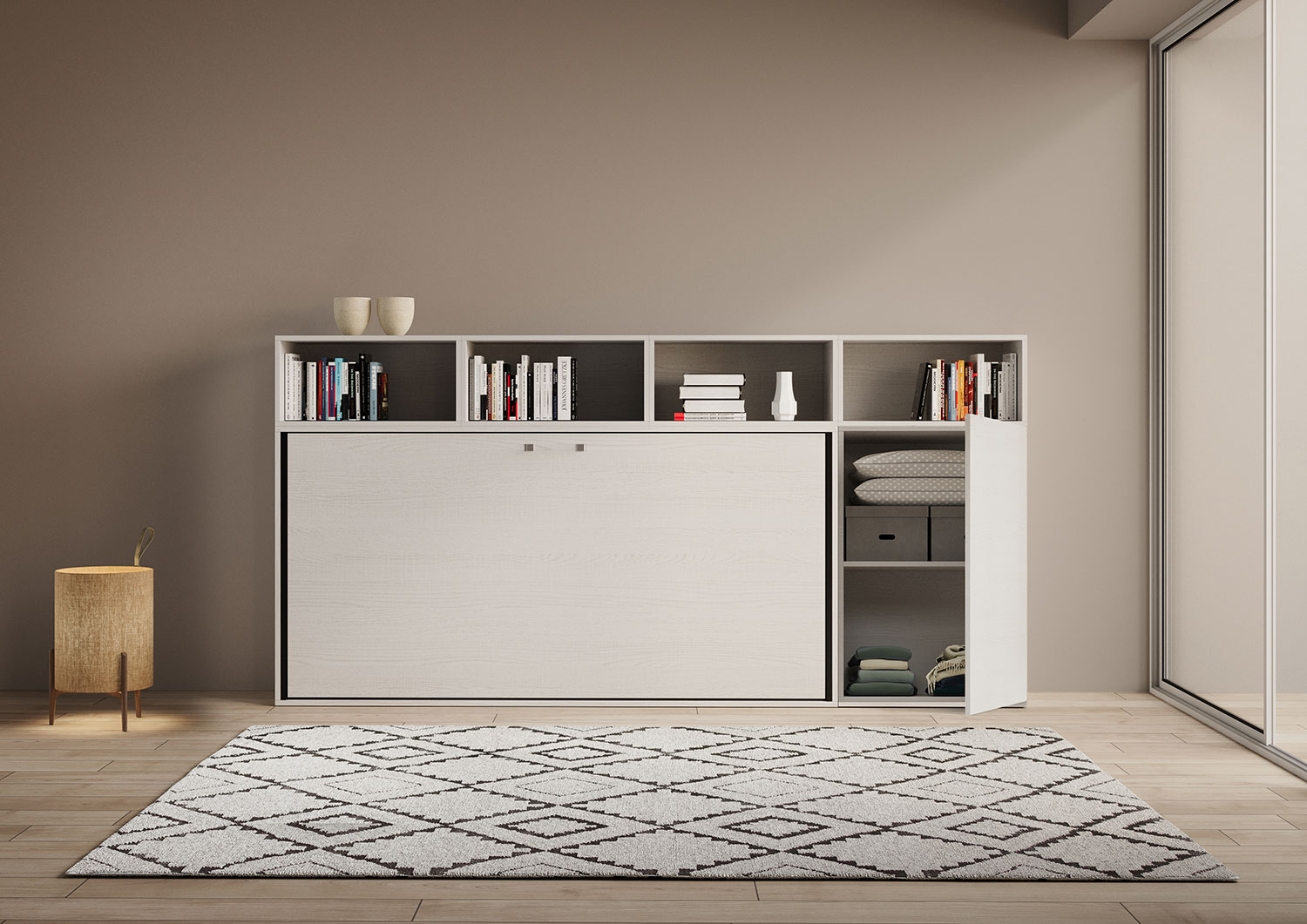 | Material | Kando A Einzelklappbett vorgeschlagen in Kombination mit einem Set von Wandmodulen vorgeschlagen wird (eines mit Tür und internem Regal und vier mit offenem Fach). Eine originelle und funktionale Lösung, die es ermöglicht, den verfügbaren Raum zu optimier |