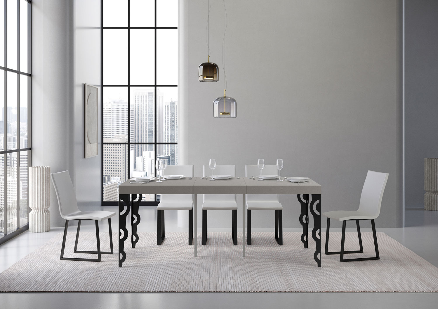 Ausziehbarer Konsolentisch Karamay Premium Small, vielseitig und robust, ein perfektes Möbelstück für jeden Raum im Haus: Eingangshalle, Küche, Esszimmer, Wohnzimmer oder Flur. Der ausziehbare Konsolentisch Karamay Premium Small lässt sich leicht in einen großen Esstisch mit einer Länge von bis zu 196 cm verwandeln, an dem bis zu 10 Personen Platz finden. Mit melaminbeschichteten Spanplatten und Eisenbeinen hergestellt. Das Auszugssystem mit Aluminium-Teleskopschienen und die zentrale Unterstütze machen den Konsolentisch stabil und robust. Im geschlossenen Zustand müssen die Verlängerungen irgendwo anders im Haus verstaut werden. Itamoby Produkt Made in Italy Produkt Maße: Im geschlossenen Zustand: B.90 T.40 H.77 cm Mit 1 Verlängerung im Einsatz: 92 cm Mit 2 Verlängerungen im Einsatz: 144 cm Mit 3 Verlängerungen im Einsatz: 196 cm