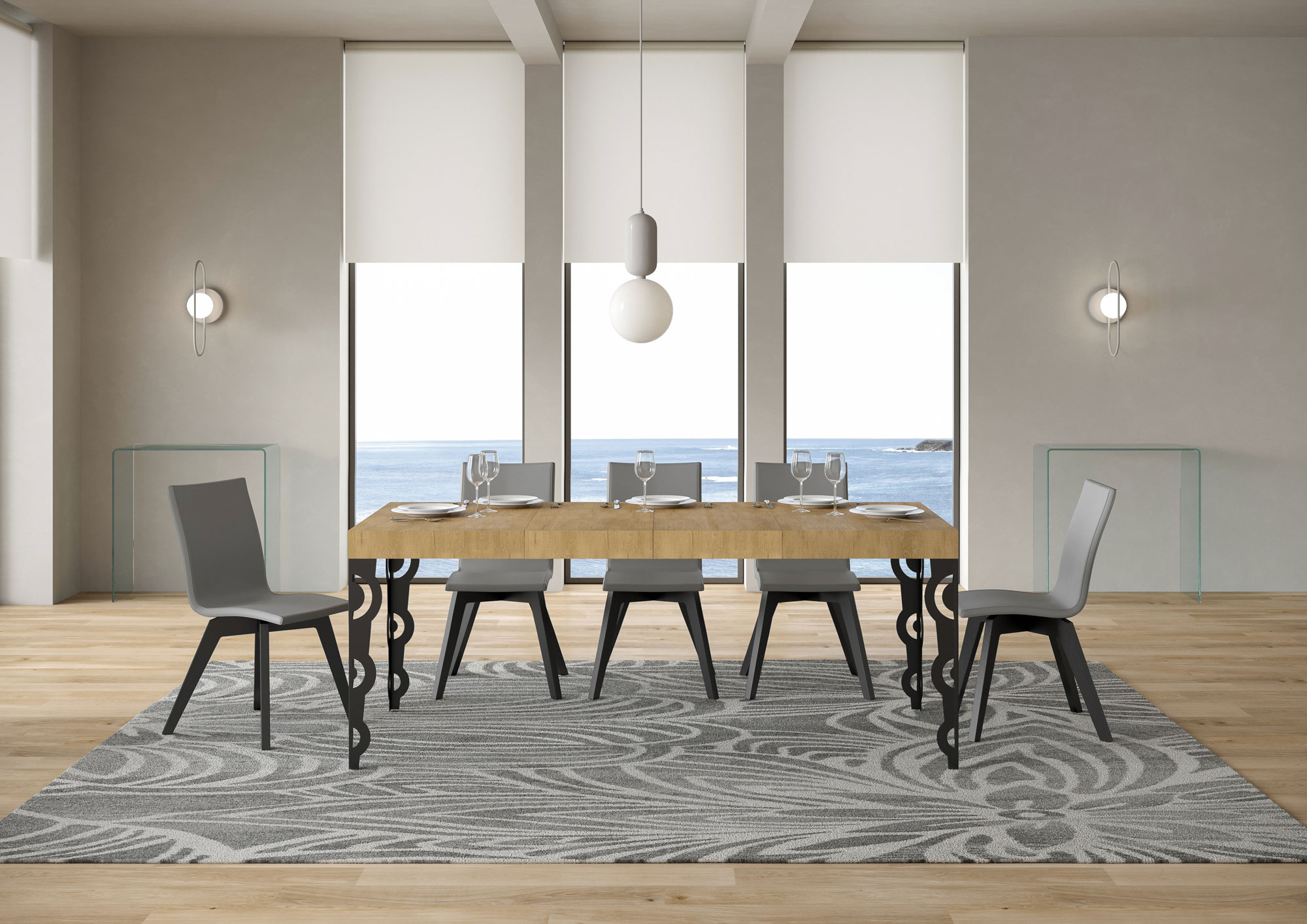 Ausziehtisch Karamay Premium 130, aus modernem Design und extravagantem Stil, fügt sich perfekt in jeden Einrichtungskontext ein und ist die ideale Lösung sowohl für die Küche als auch für das Wohnzimmer, wo Sie Ihre Gäste immer stilvoll empfangen können.
