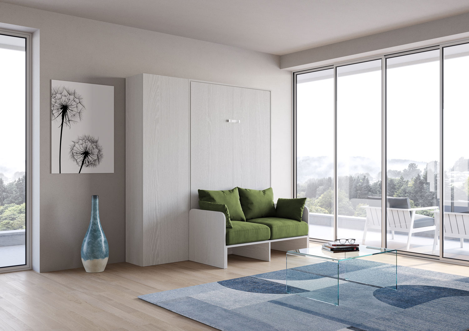 | Material | Vertikales Wandklappbett Kentaro mit Sofa 120, vorgeschlagen in der Version mit einem Sofa auf der Vorderseite und mit einem praktischen Säulenelement aus der Isoka-Linie. Das Mikrofasersofa ist Alessia 20 (wie abgebildet). Eine komplette Komposition für |