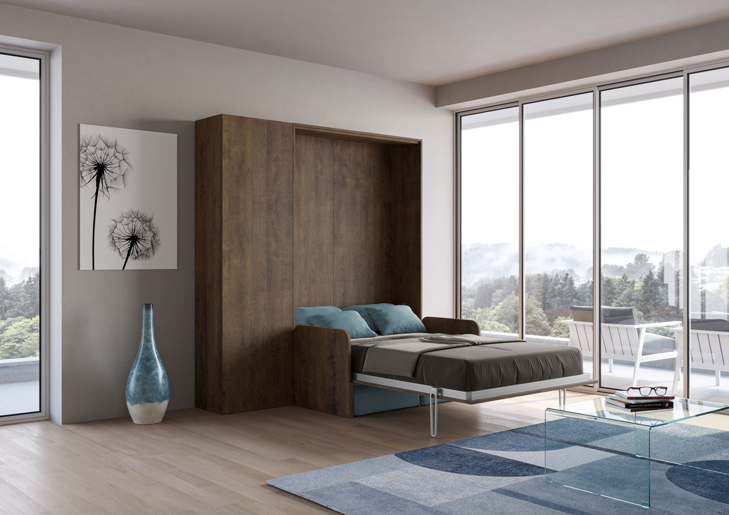 | Material | Vertikales Wandklappbett Kentaro mit Sofa 120, vorgeschlagen in der Version mit einem Sofa auf der Vorderseite und mit einem praktischen Säulenelement aus der Isoka-Linie. Das Mikrofasersofa ist Alessia 20 (wie abgebildet). Eine komplette Komposition für |