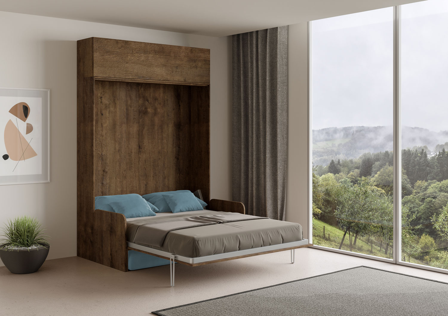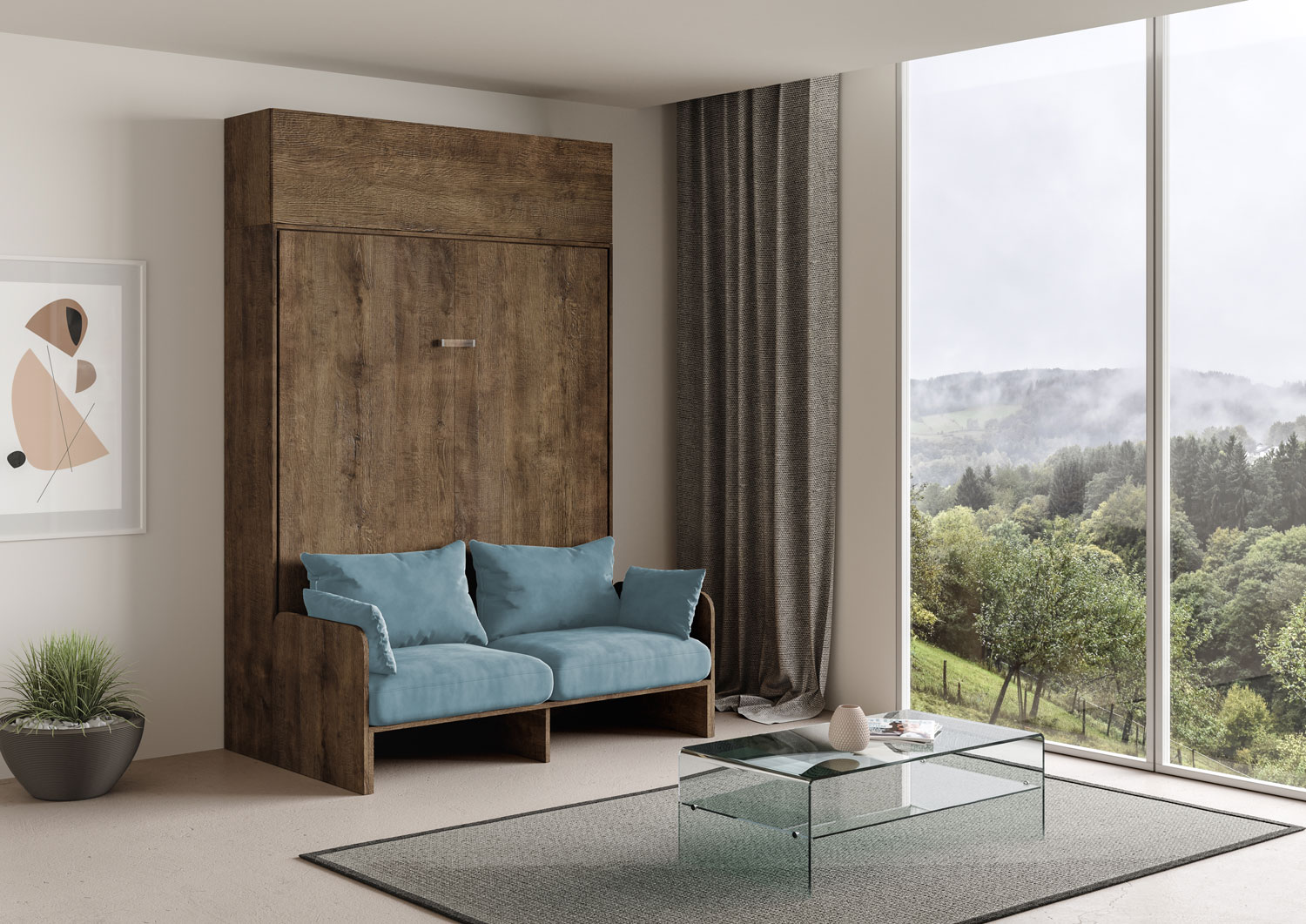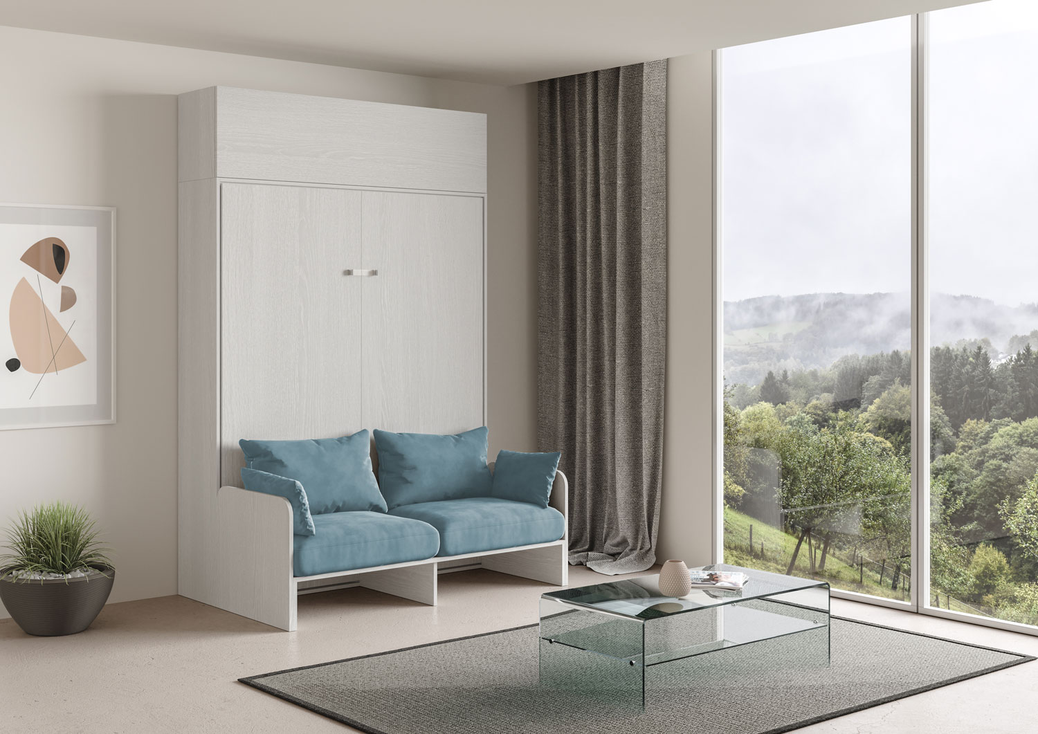 | Material | Vertikales Wandklappbett Kentaro mit Sofa 160, vorgeschlagen in der Version mit einem Sofa auf der Vorderseite und mit einem praktischen Säulenelement aus der Isoka-Linie. Das Mikrofasersofa ist Alessia 20 (wie abgebildet). Komplette Komposition für einen |