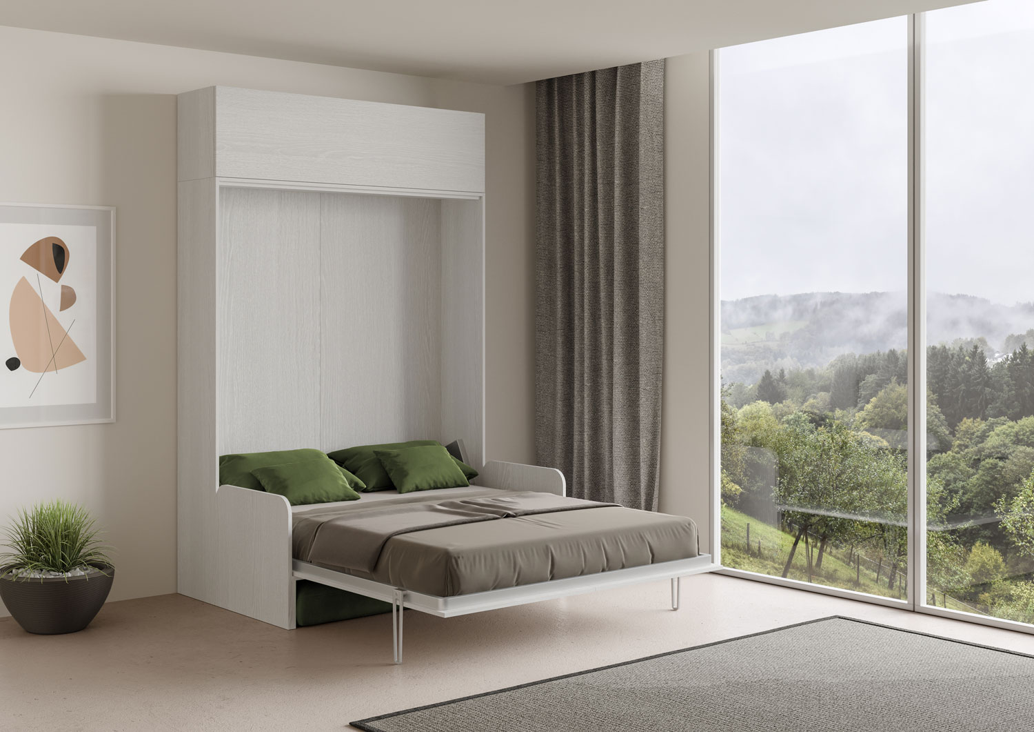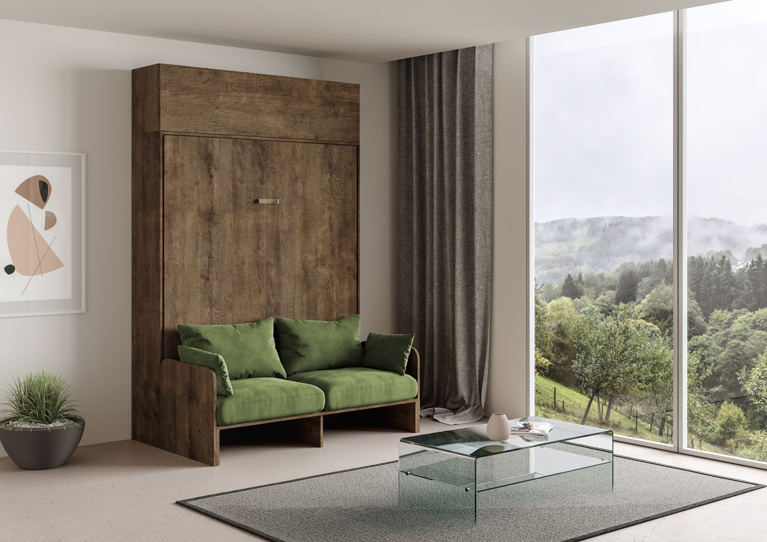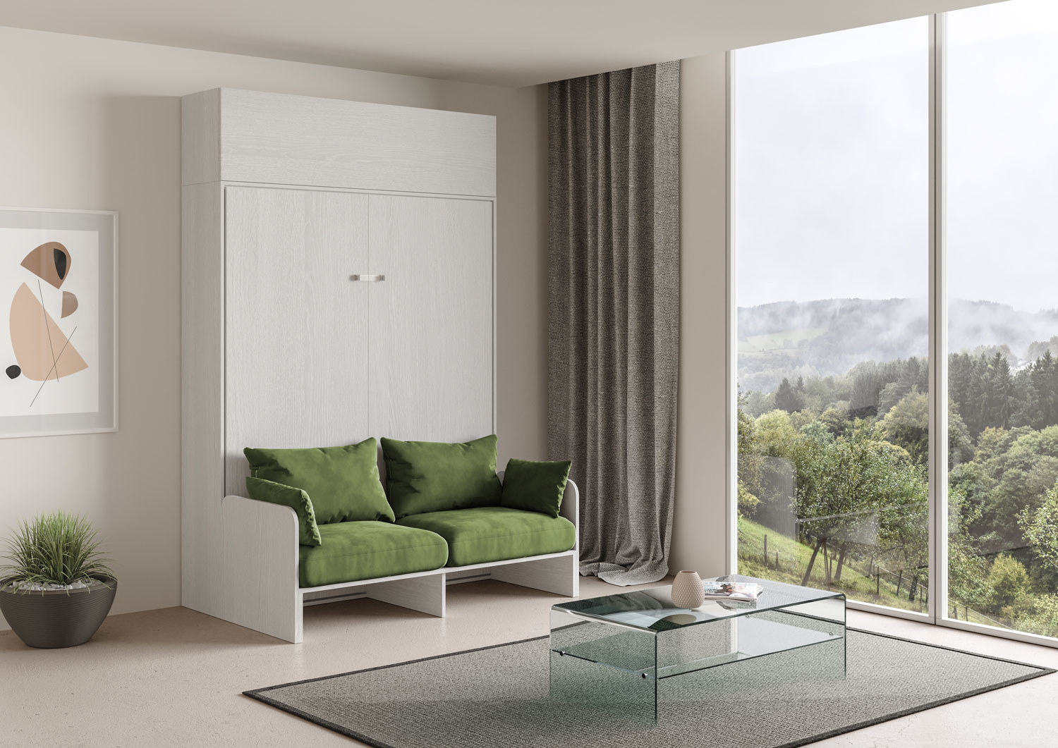 | Material | Vertikales Wandklappbett Kentaro mit Sofa 160, vorgeschlagen in der Version mit einem Sofa auf der Vorderseite und mit einem praktischen Säulenelement aus der Isoka-Linie. Das Mikrofasersofa ist Alessia 20 (wie abgebildet). Komplette Komposition für einen |