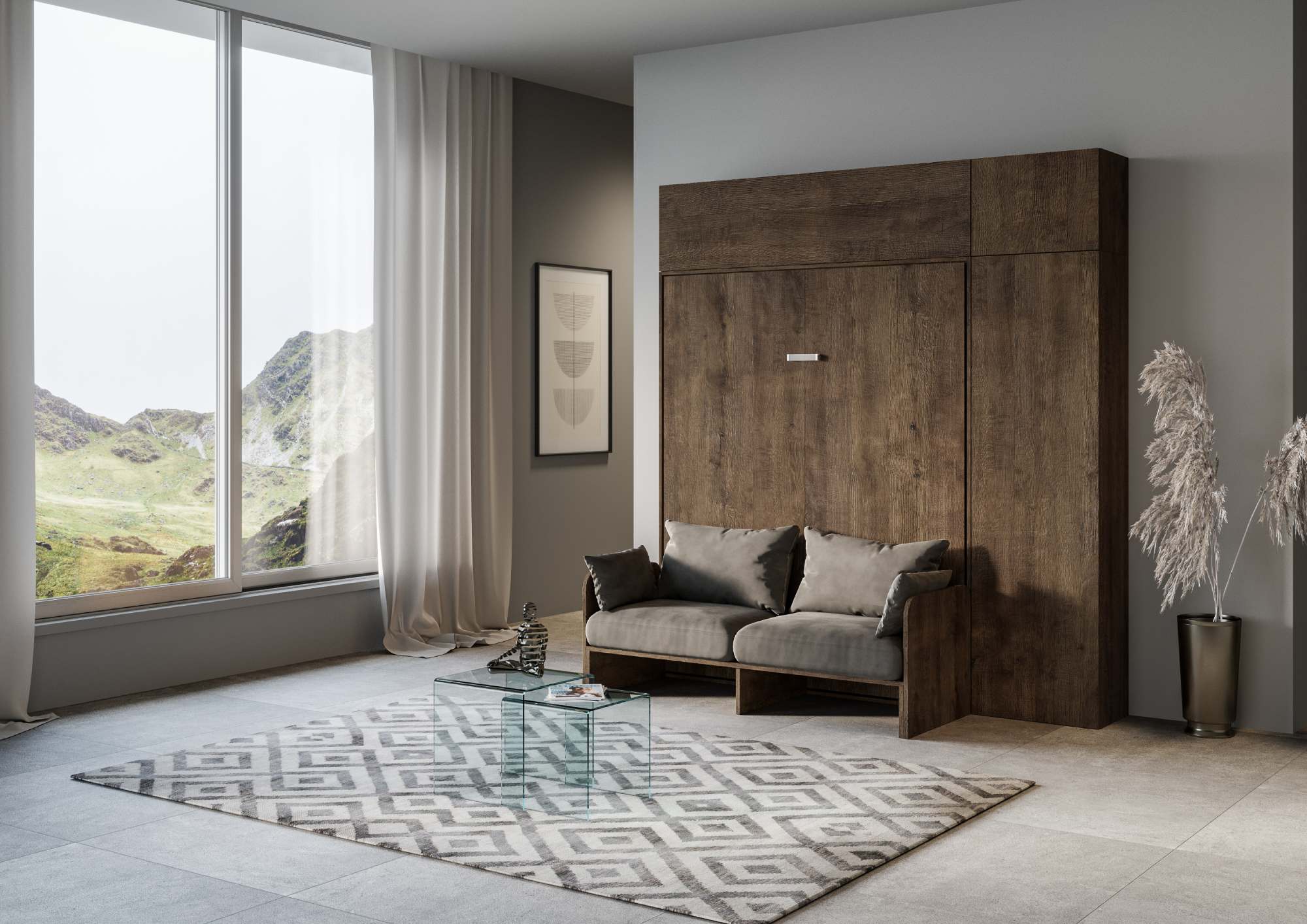 | Material | Klappbares Schrankbett Kentaro mit Sofa 160, vorgeschlagen in der Version mit Sofa, einem Säulenschrank und zwei Wandschränken aus der Isoka-Linie. Das Mikrofasersofa ist Alessia 20 (wie abgebildet). Eine vielseitige, intelligente und multifunktionale Kom |