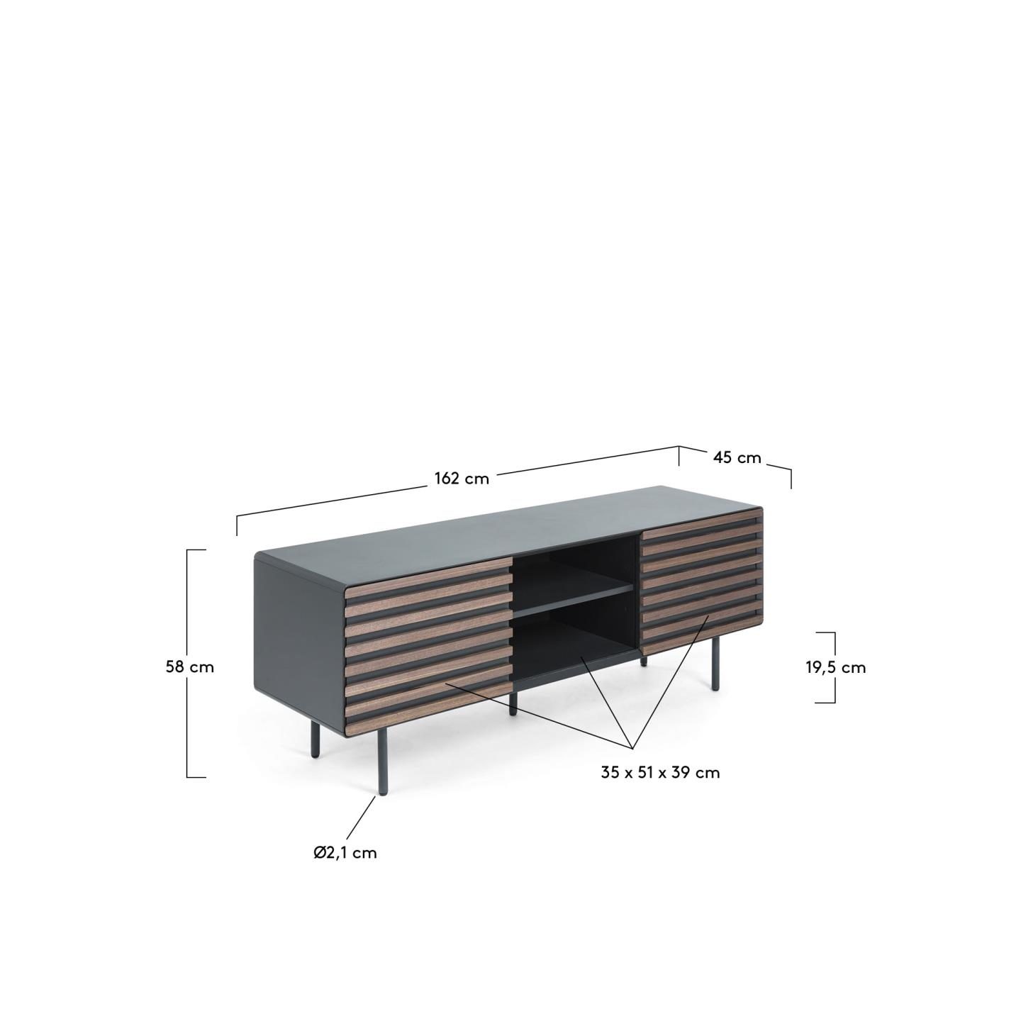 | Material | 72 % MDF E0 (mitteldichte Faserplatte mit geringer Formaldehydemissionsklasse E0), 14 % Stahl, 14 % Walnussfurnier (Juglans nigra) |