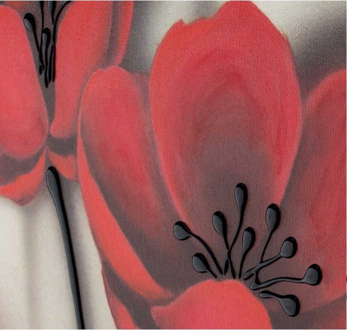 Hand dekoriert mit Harzdetails im Relief auf einer Leinwandstruktur.