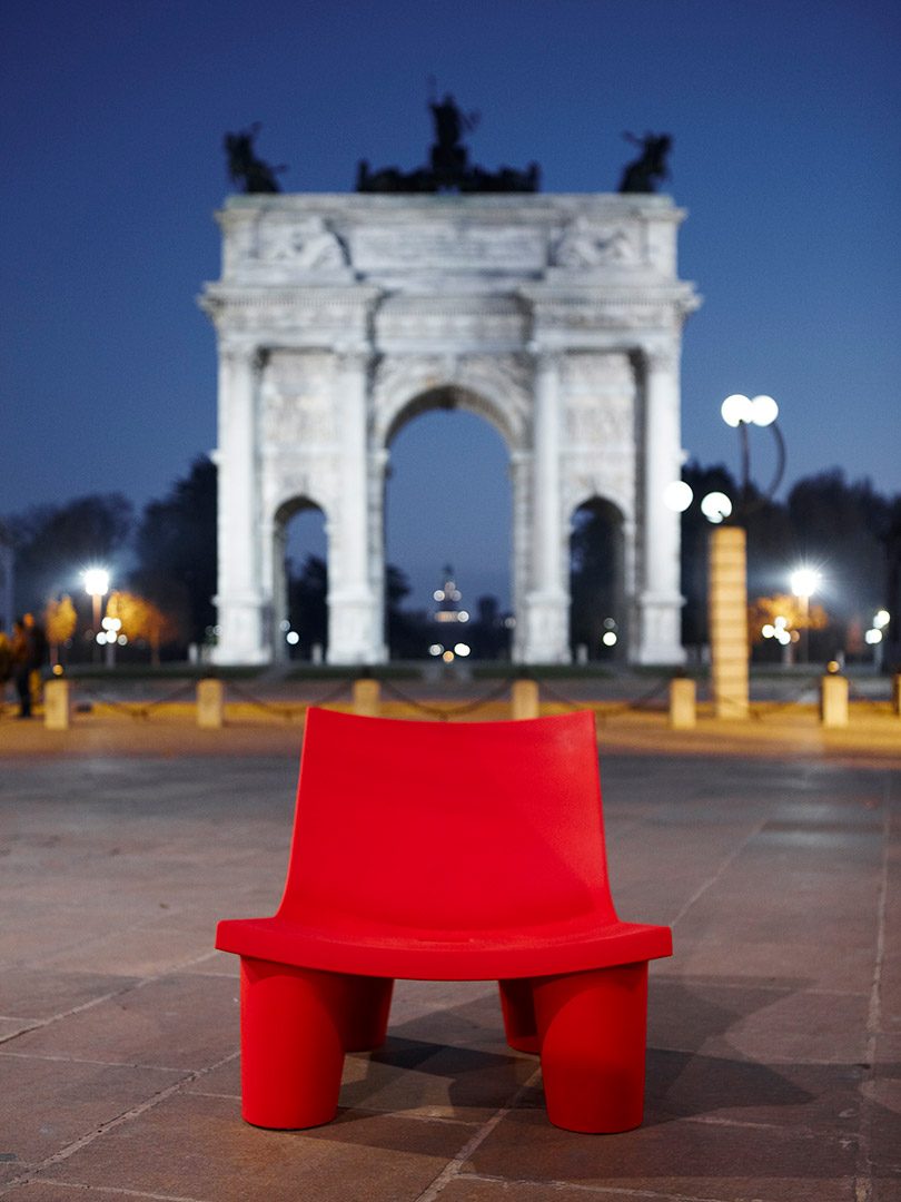 Der von der sehr berühmten italienischen Designerin Paola Navone entworfene Loungesessel Low Lita überzeugte sofort das Publikum und wurde zu einem der gefragtesten Produkte der gesamten SLIDE-Produktion. Low Lita wird im Rotationsformverfahren aus Polyethylen hergestellt und fällt mit seinem witzigen Design auf. Der Sitzkomfort und die modernen Linien garantieren Entspannung und Komfort. Die Größe der vier Beine, robust und unregelmäßig, ruft einen fernen afrikanischen Geist hervor. Low Lita eignet sich für den Innen- und Außenbereich und ist auch in einer lackierten Version erhältlich, die für den Objektbereich konzipiert ist. Zusammen mit dem Sessel sind außerdem der Low Lita Table, der Low Lita Love Doppelsitz und die Low Lita Lounge Chaiselongue erhältlich. Für alle Sitze sind weiche Kissen aus wasserdichtem Stoff erhältlich.