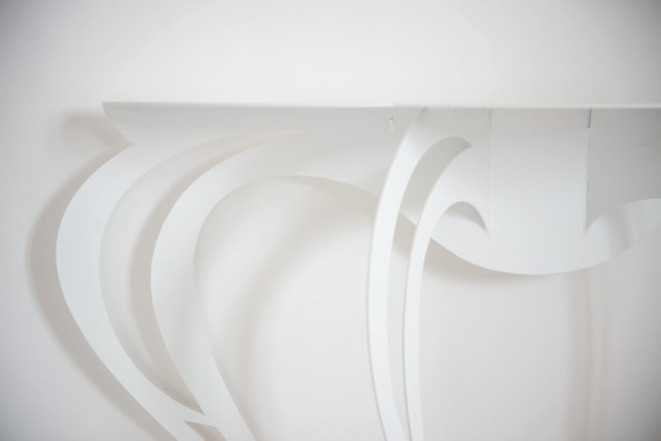 Die Konsole steht für sich und hat Schlitze auf der Rückseite, um sie an der Wand zu befestigen.