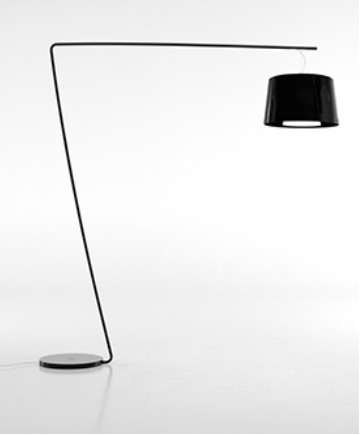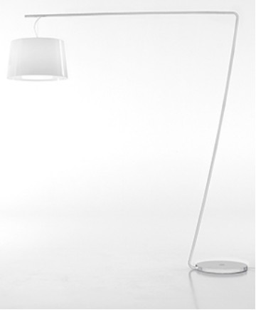 Stehlampe mit weiß oder schwarz lackiertem Stahlsockel und Pedalzündung. Der doppelte Polycarbonat-Diffusor streut das Licht und erzeugt eine ätherische Atmosphäre.