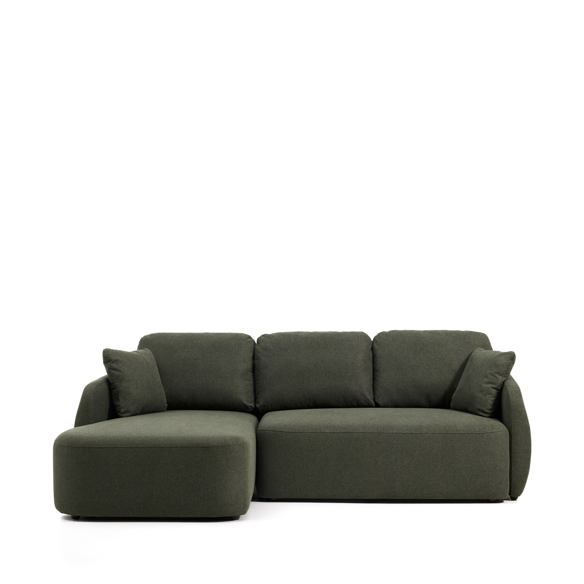 Laira 3-Sitzer-Schlafsofa aus dunkelgrünem Chenille mit Chaiselongue links 246 cm FSC Mix Credit