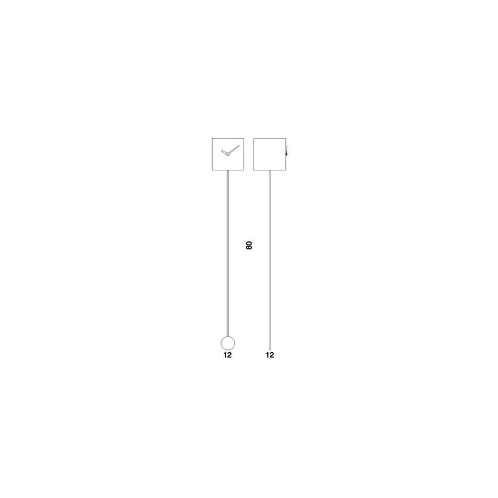 Long_time markiert den Lauf der Zeit mit dem friedlichen und stillen Schaukeln des langen Pendels, das es kennzeichnet. Vertikal entwickelt, besteht es aus der kubischen Struktur der Uhr aus weißem, rotem, grünem oder schwarzem Holz, die sich im oberen Teil befindet, von dem aus sich das lange weiße Pendel erstreckt. Aus Holz. Batterie Quarzwerk.