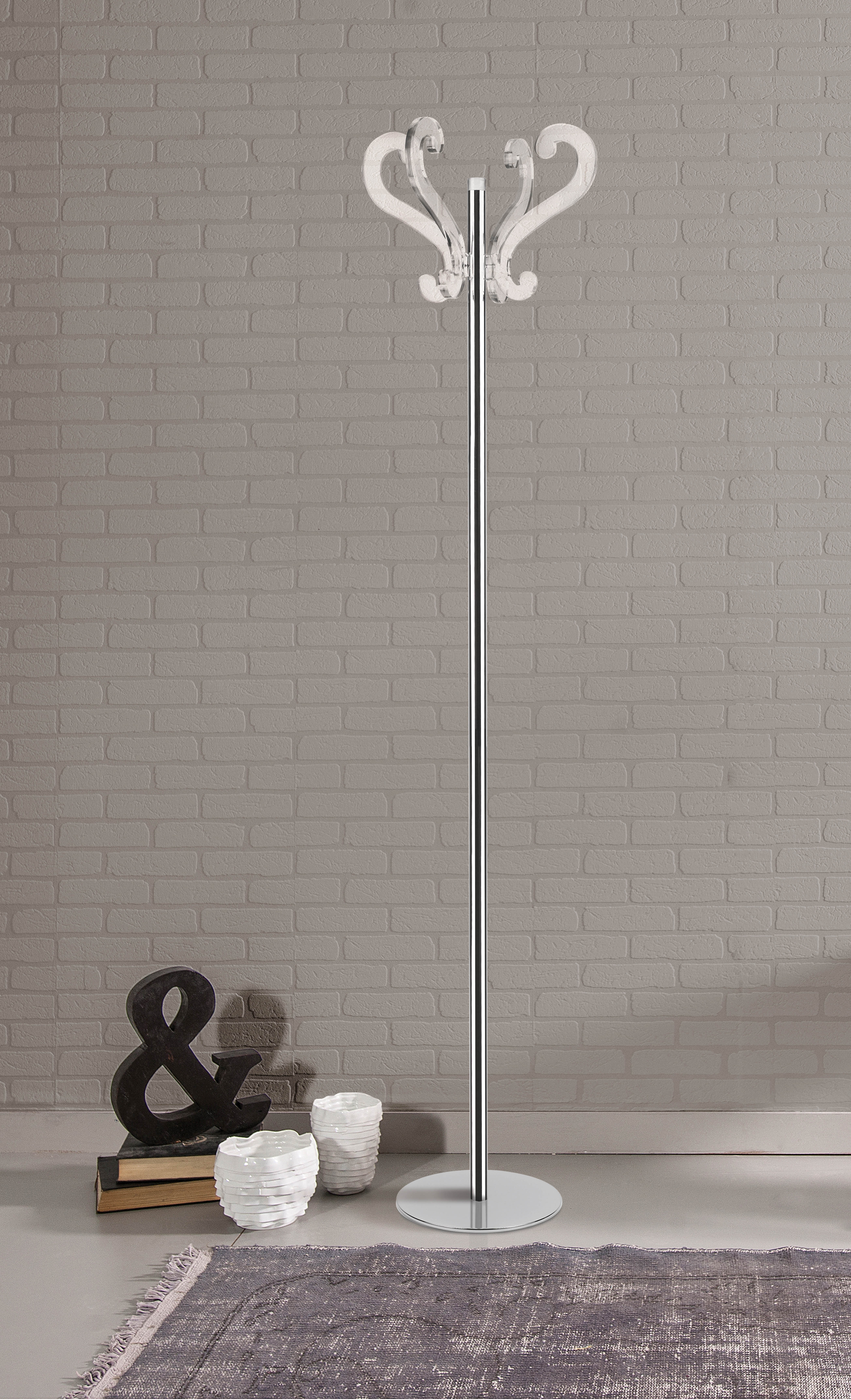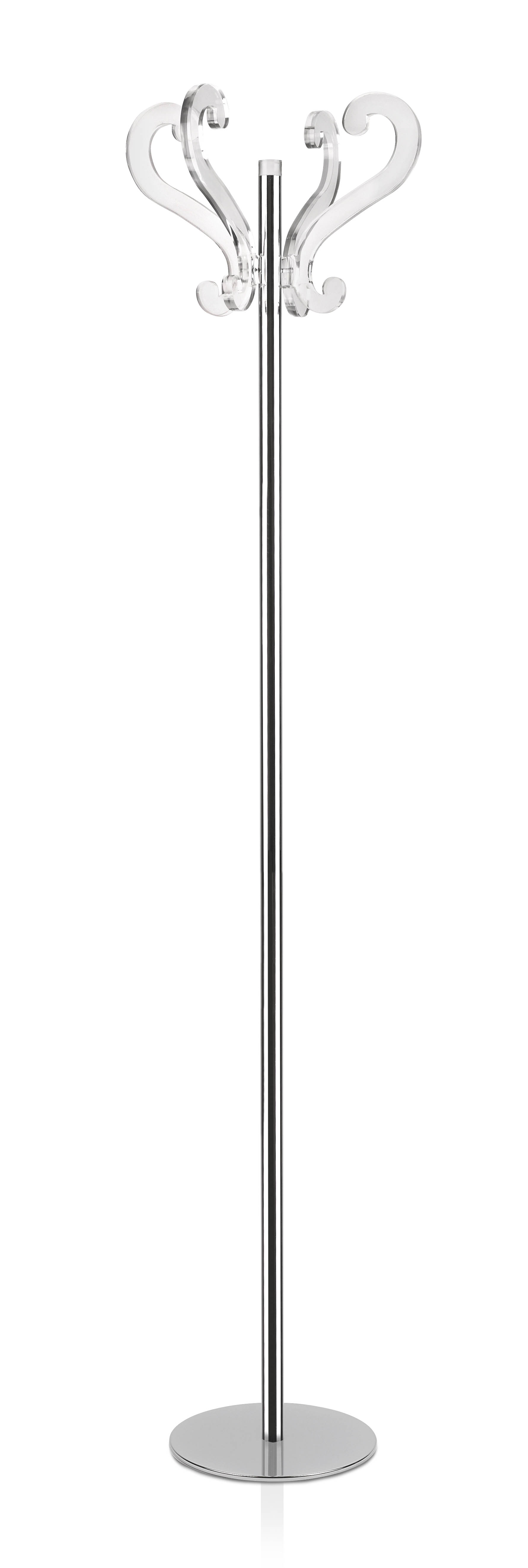 Transparente Acrylglasgarderobe mit Stahlkonstruktion.