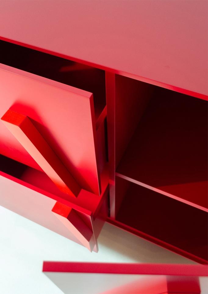 Das Sideboard LOVE von Driade ist ein ausdrucksstarkes Poster, ein zweidimensionales Poster, das von Liebe spricht. Es verkörpert gleichzeitig Ästhetik und Funktion und wird zu einem bequemen Behälter, aus dem die Buchstaben LOVE herauskommen und Griffe erzeugen, vielseitige Elemente, die in unzähligen Farbkombinationen erhältlich sind.