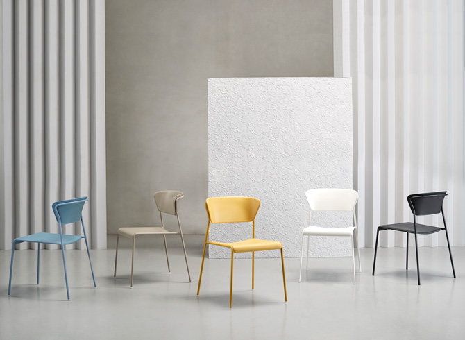 Lisa zeichnet sich in jedem Kontext durch ihre Eleganz aus. In dieser Version zeichnen sich Stuhl und Hocker durch eine Sitzfläche und Rückenlehne aus Technopolymer aus, deren weiche Formen ein angenehmes Gefühl von Fülle und Solidität vermitteln.