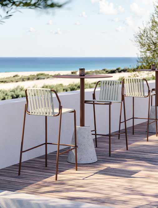 Der Sitz zeichnet sich durch eine Batyline-Membran aus, ist leicht, elegant, beständig gegen UV-Strahlen, Schimmel und Witterungseinflüsse, recycelbar und leicht austauschbar.