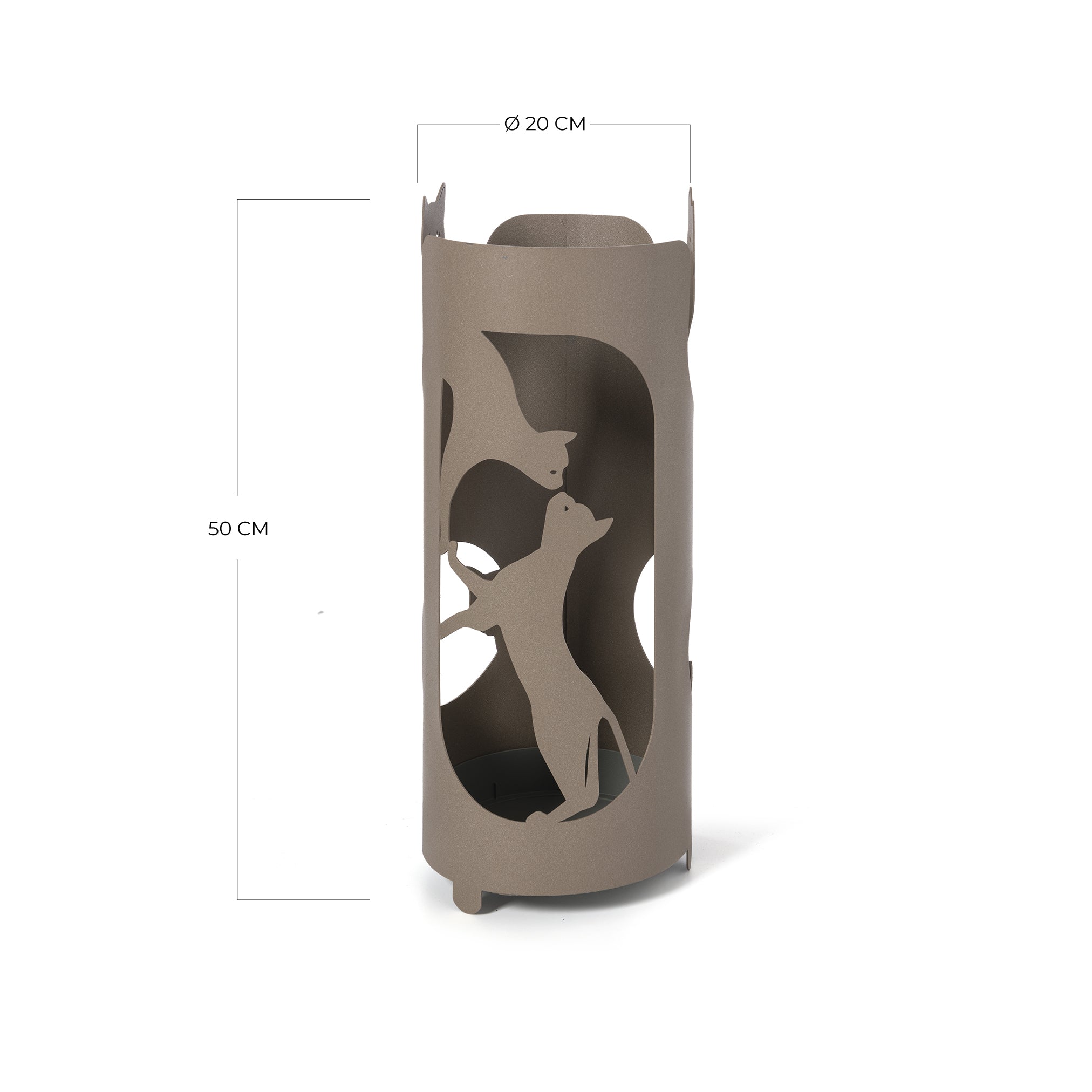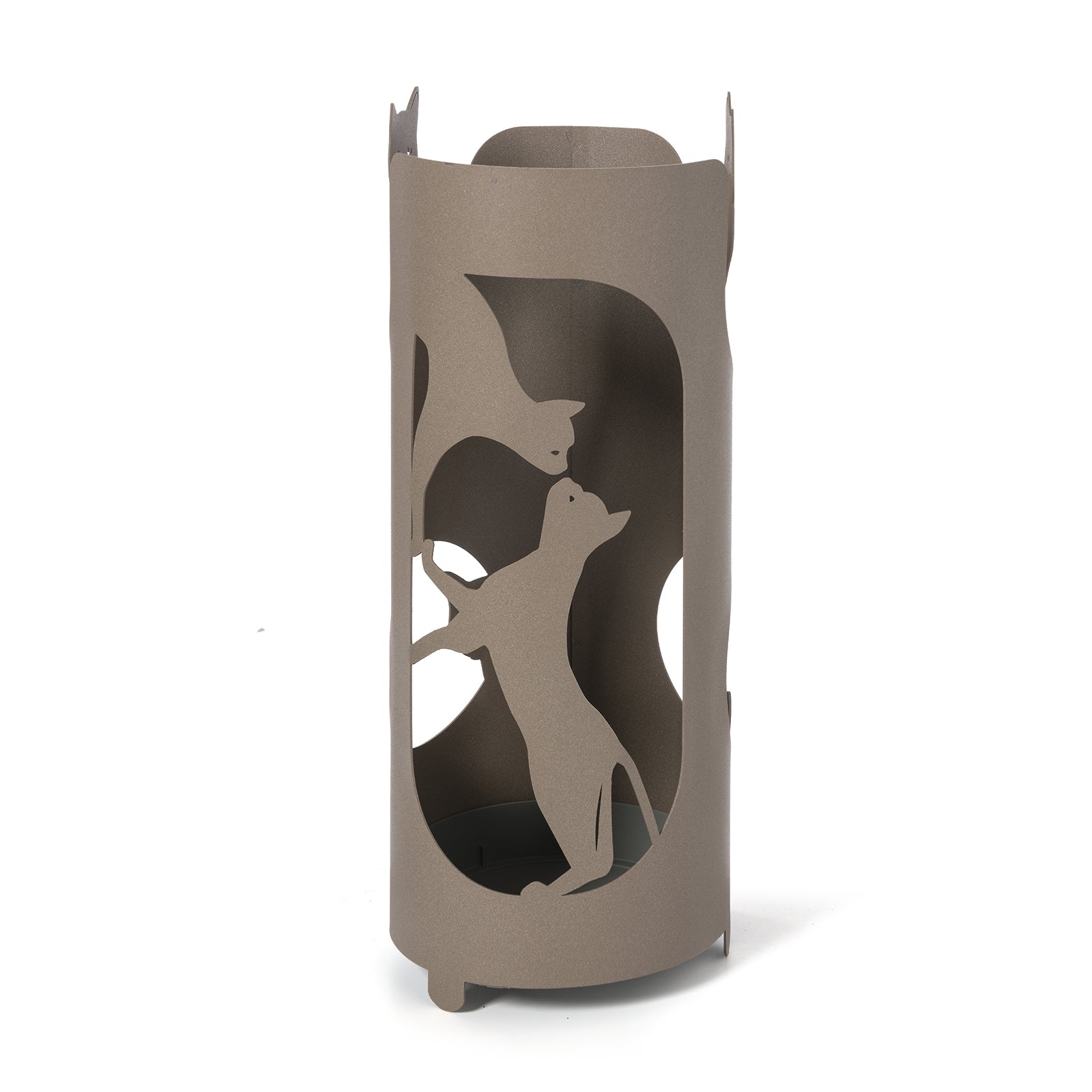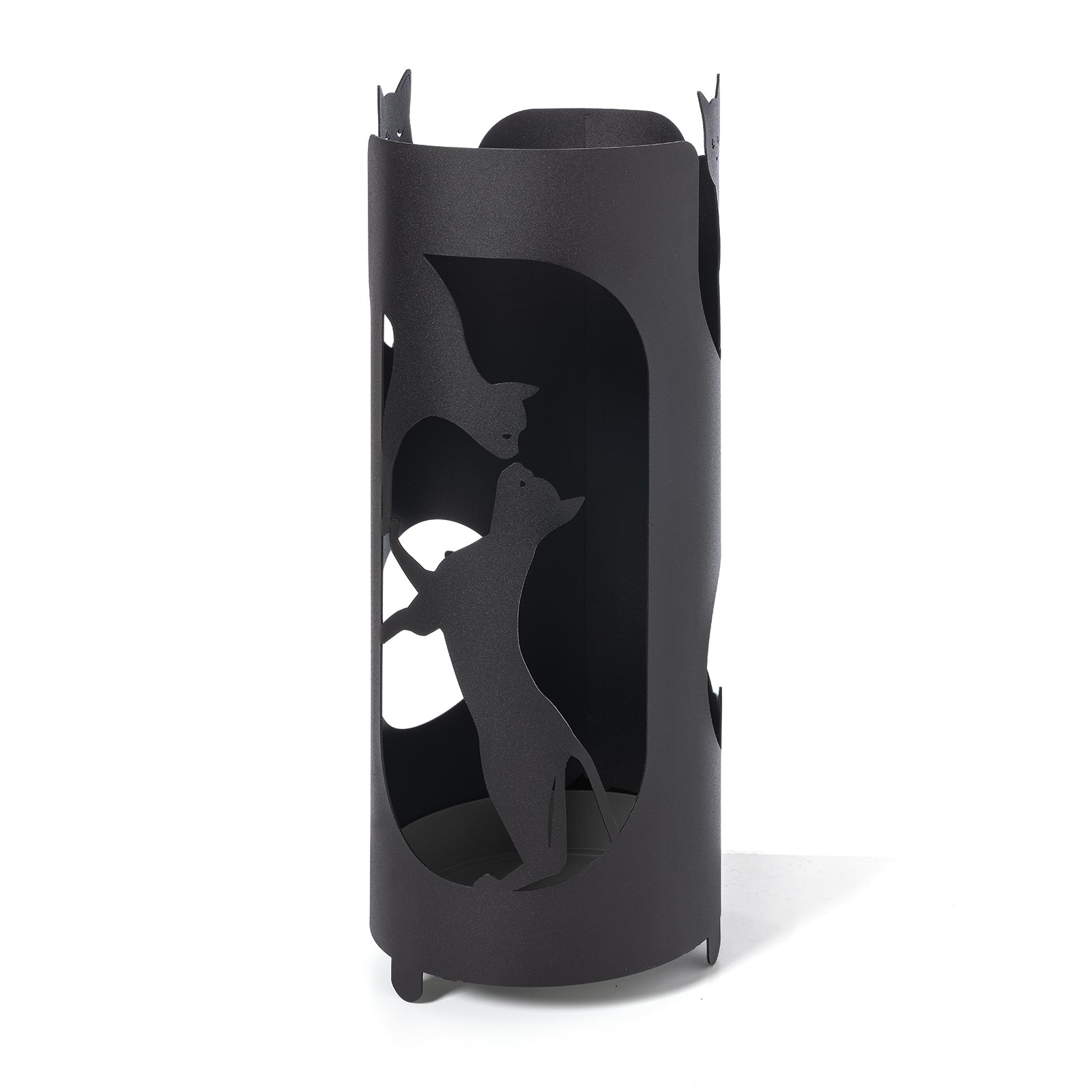 Das Highlight dieses Schirmständers ist seine perforierte Struktur, die Katzensilhouetten in verschiedenen Posen und Winkeln hervorhebt. Ein visuelles Spiel, das die Neugier der Katzen würdigt und nicht nur Katzenliebhaber, sondern auch alle anderen anspricht, die ein unverwechselbares und charaktervolles Dekorationsdetail suchen.