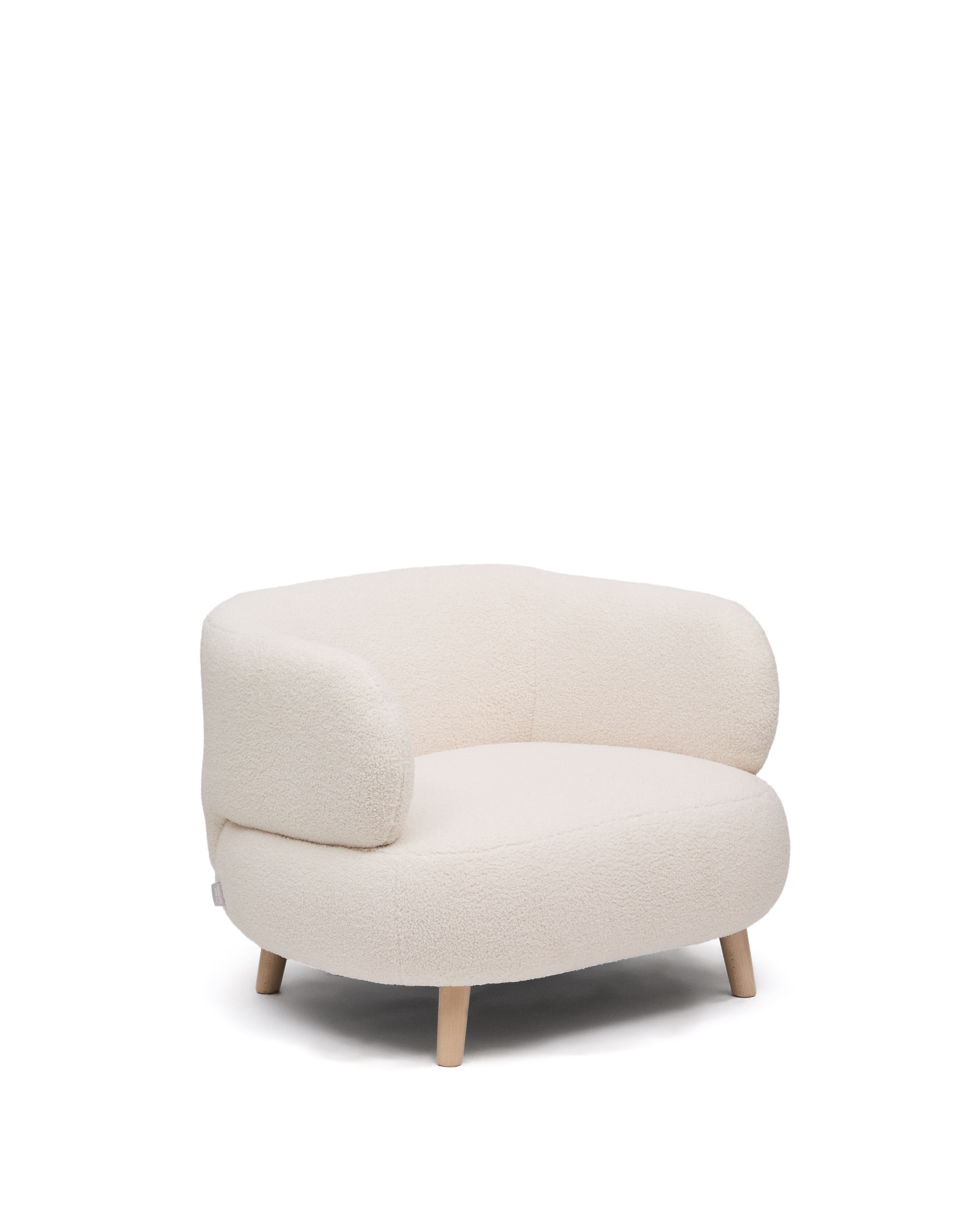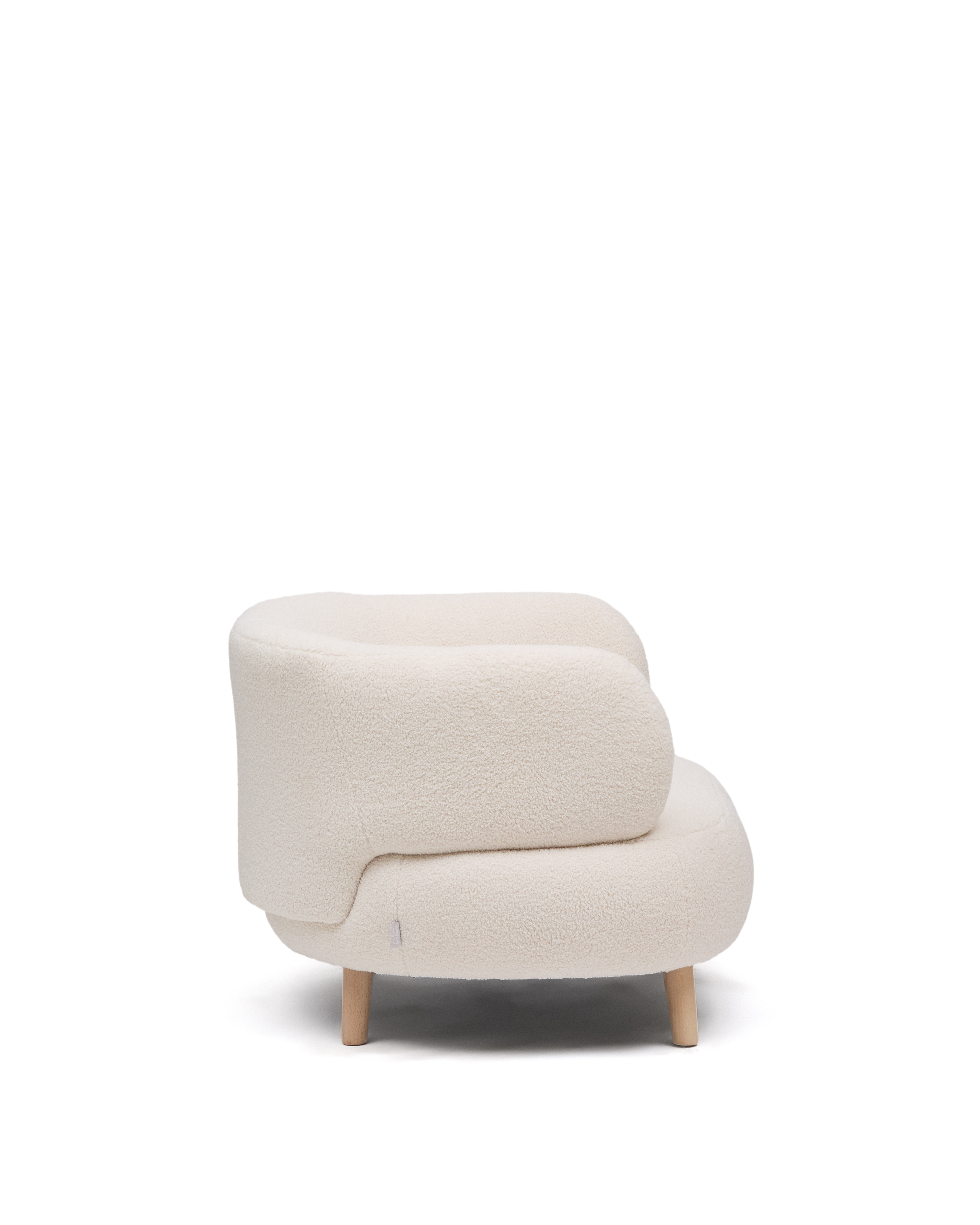 Luisa Sessel aus ecrufarbenem Bouclé-Stoff aus massivem Buchenholz 90 cm