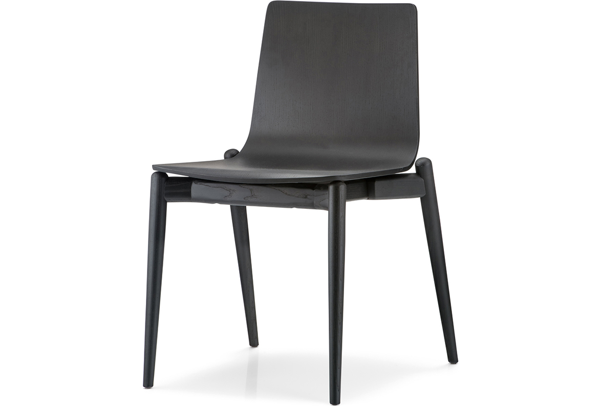 Rahmen aus gebleichtem, schwarzem oder hellgrau gebeiztem Eschenholz und Sperrholzschale.