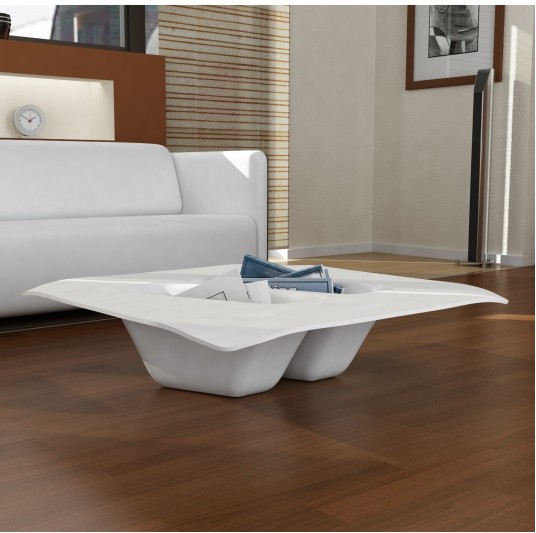 Manta ist ein Couchtisch, der sich durch organische und natürliche Formen auszeichnet. Es ist mit einem praktischen Zeitungsständer ausgestattet, der auch als Stütze für den Tisch selbst dient.
