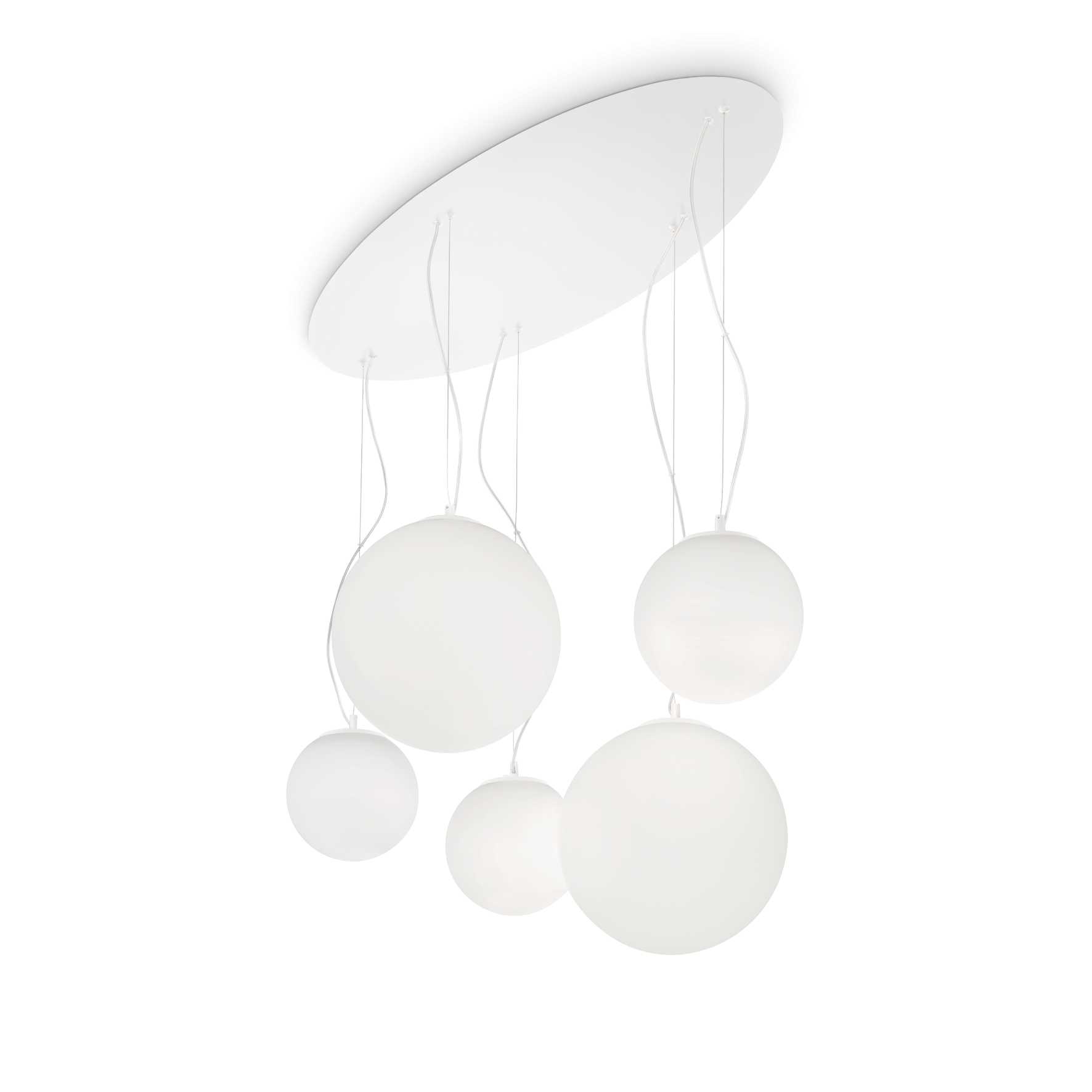 Pendelleuchte mit 5 Lampen in einem einzigen weißen Finish erhältlich.