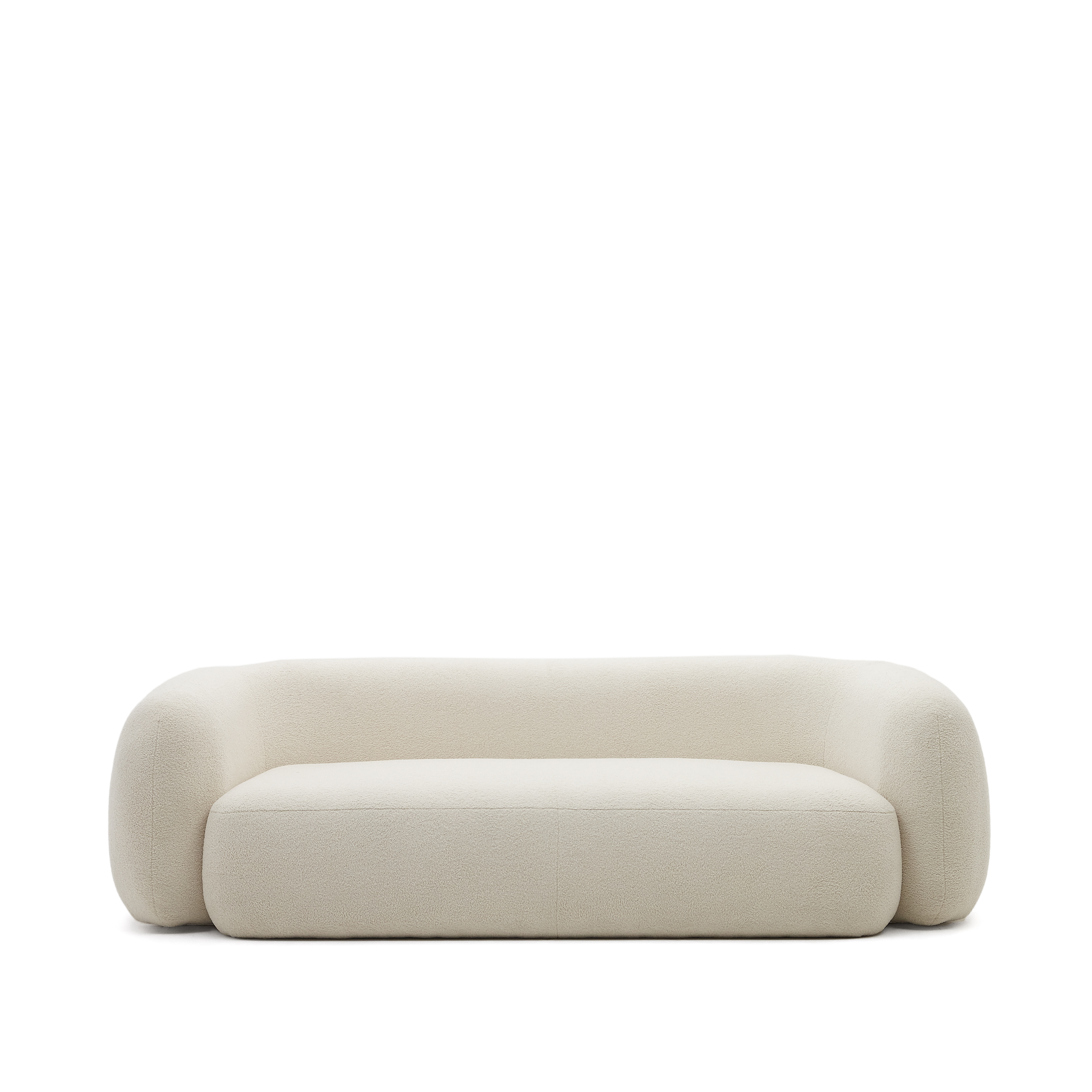 Inspiriert vom Trend zu organischen Formen und geschwungenen Linien, besticht Martina durch sein schlichtes, geometrisches Design mit geschwungenen und abgerundeten Volumen, das ihm höchsten Komfort und Eleganz verleiht. Das 3-Sitzer-Sofa Martina besticht durch seinen warmen und weichen Bezug in Schaffelloptik aus 100 % recyceltem Polyester. Jeder Meter Bezug enthält mindestens 32 recycelte 500-ml-Flaschen. Der Stoff ist zudem hochabriebfest und sorgt für eine makellose Optik und lange Haltbarkeit – ideal für den täglichen Gebrauch. Die mittelfeste Sitzfläche besteht aus Gurtband und 30 kg/m³ Schaumstoff und ist für hohe Strapazierfähigkeit ausgelegt, während die Rückenlehne mit 20 kg/m³ Schaumstoff bequemen und umhüllenden Halt bietet. Für ein noch individuelleres und komfortableres Sitzerlebnis empfehlen wir die Kombination mit Kissen (separat erhältlich). Der Stofflieferant ist nach dem Global Recycled Standard zertifiziert, der einen reduzierten Ressourcen- und Materialverbrauch garantiert, sowie nach dem OEKO-TEX® STANDARD 100 für eine umweltverträgliche und verantwortungsvolle Produktion. Die Struktur vereint Robustheit und Zuverlässigkeit dank FSC Mix Credit-zertifiziertem Holz, das aus einem Materialmix aus FSC-zertifizierten Wäldern und FSC-kontrolliertem Holz hergestellt wird. Darüber hinaus trägt die lokale Produktion in Europa zur Reduzierung der CO2-Emissionen und damit zur geringeren Umweltbelastung bei.