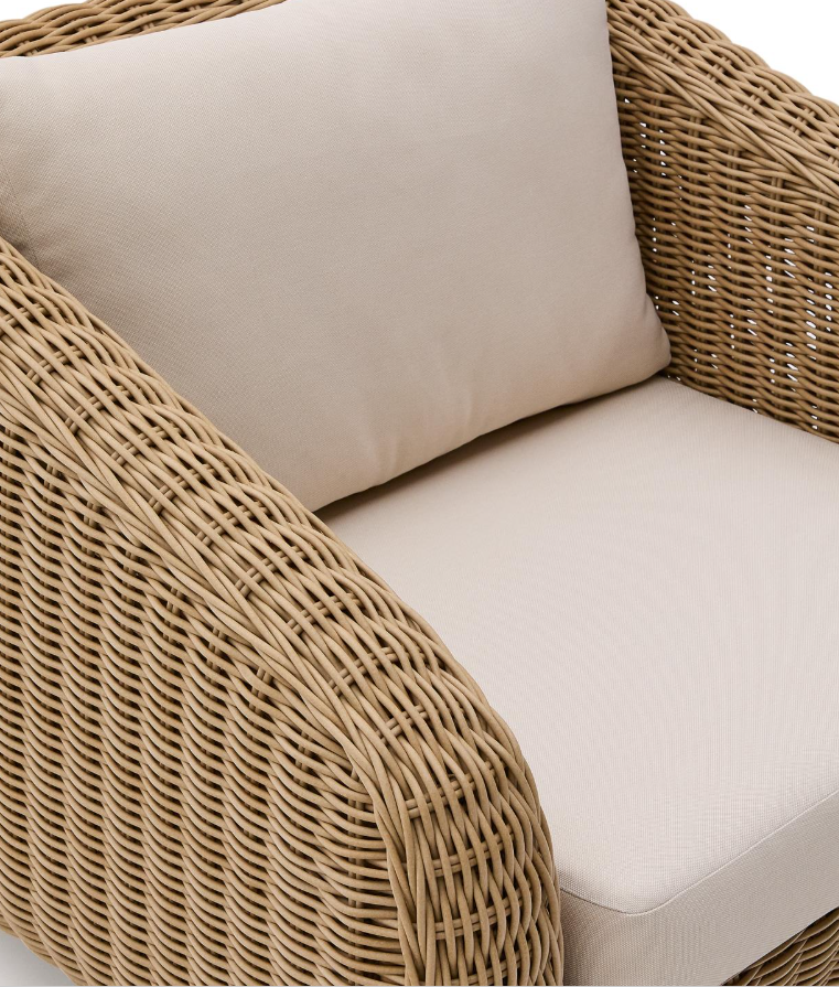 | Material | 44 % Stahl, 44 % synthetisches Korbgeflecht, 7 % Schaumstoff (Polyurethan), 3 % Holz, 2 % Stoff |